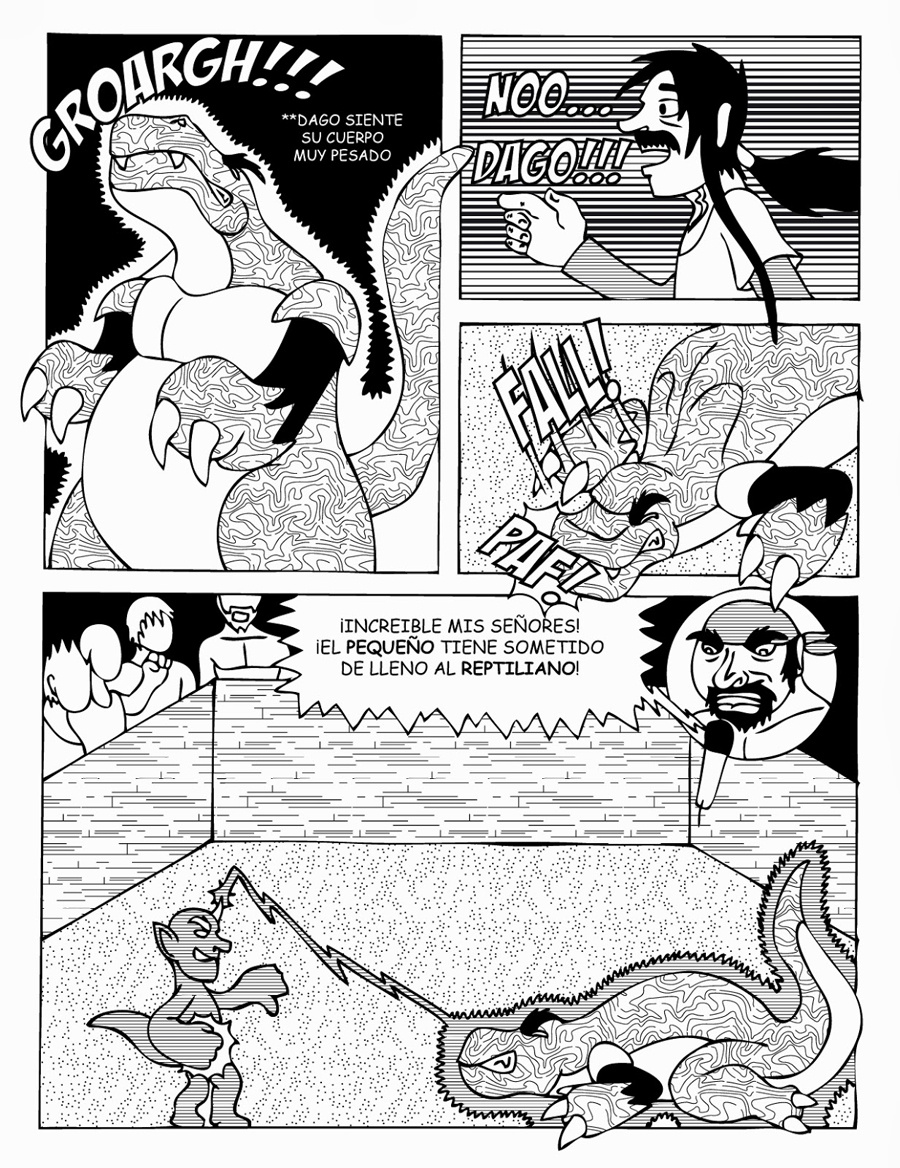 Dago es un Guerrero Reptiliano que compite en la ChWF (Chubby Wrestling Monster Federation... Federación de Lucha para Monstruos Gordos).
