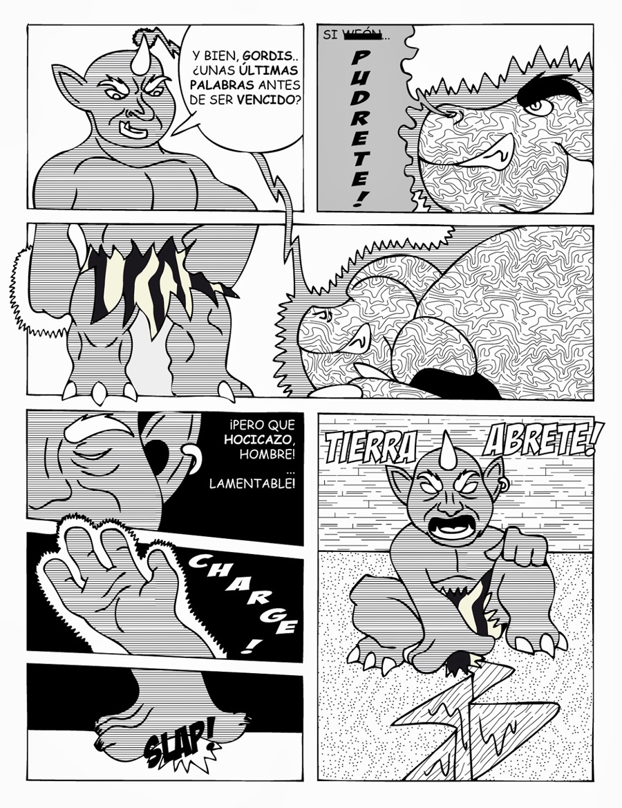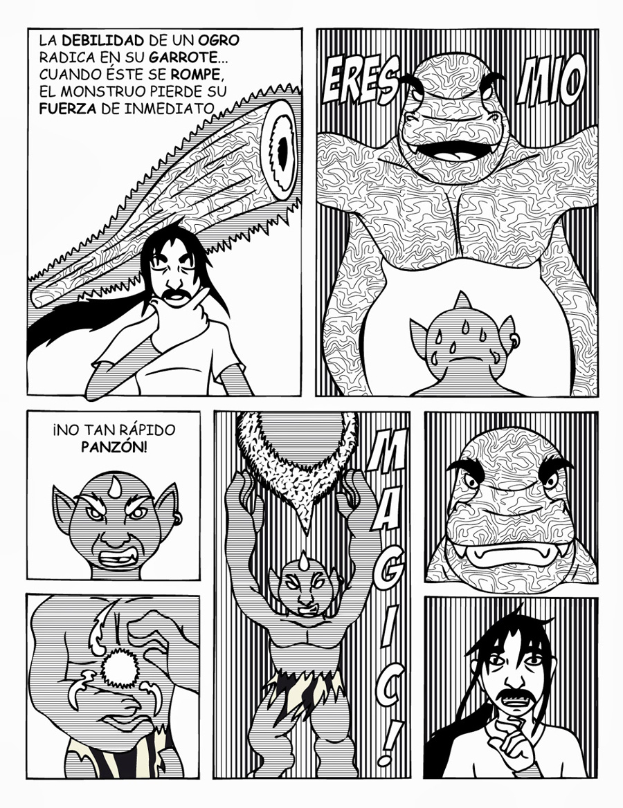 Dago se bate, a duras penas contra un musculoso Ogro Gris...