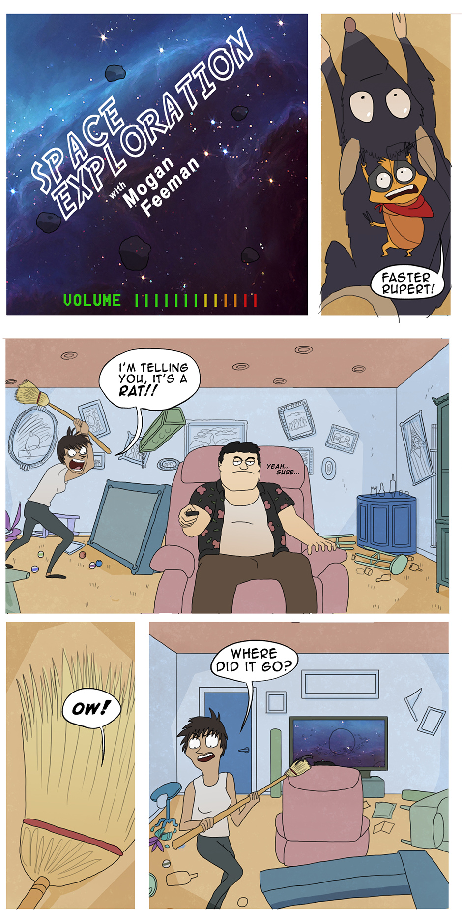 Riki tries to find a location to launch into space but finds it hard when people are trying to squish him.