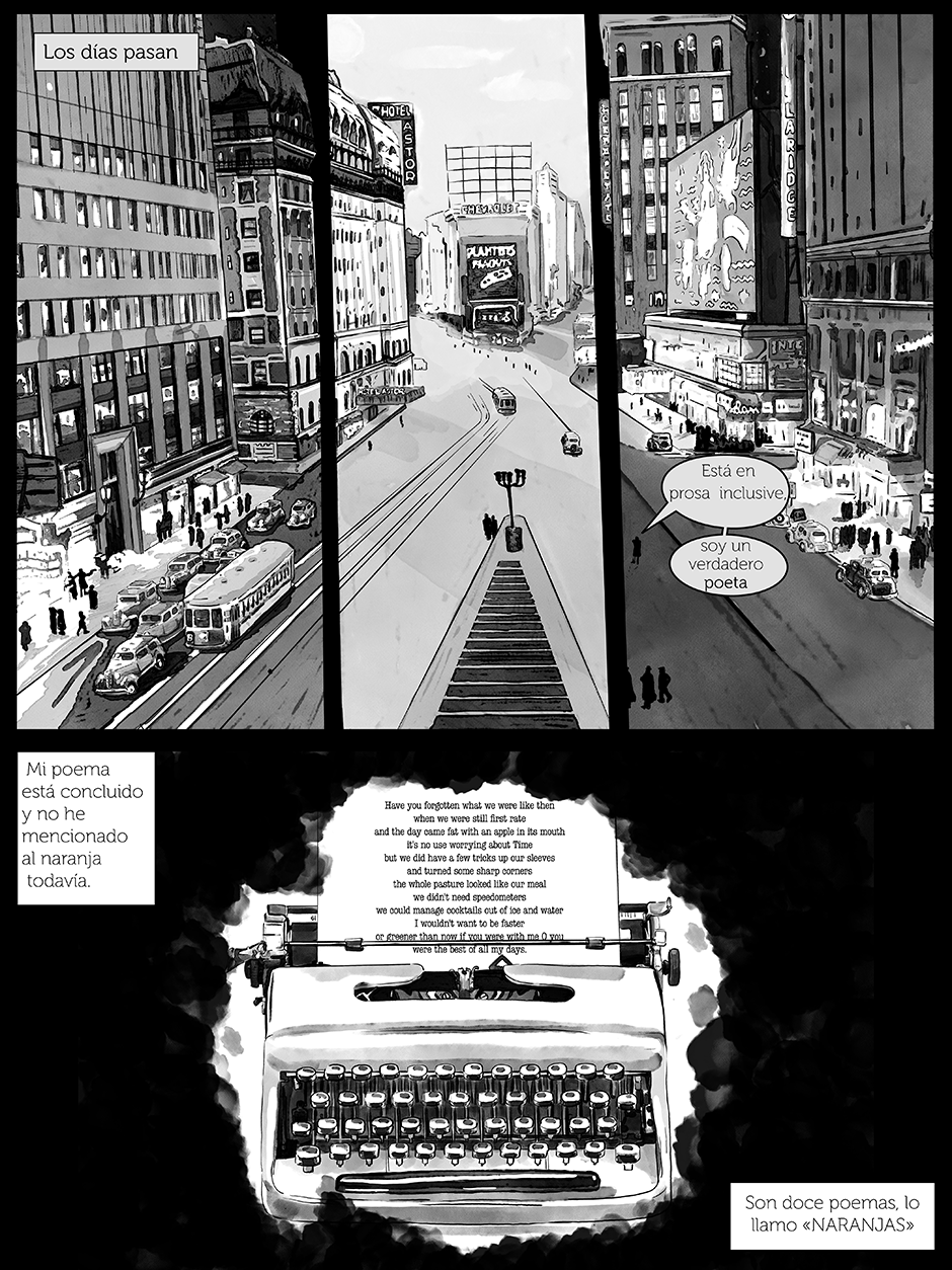 In the first chapter of Ripping UP Tales, we will delve into an ironic and vertiginous poem written by the American Frank O'Hara in the fifties. Within the panels of this comic, you will find that illustrations will transport you to the time of the pictorial revolution of New York abstract expressionism, so sit back and enjoy the journey in the following few pages.