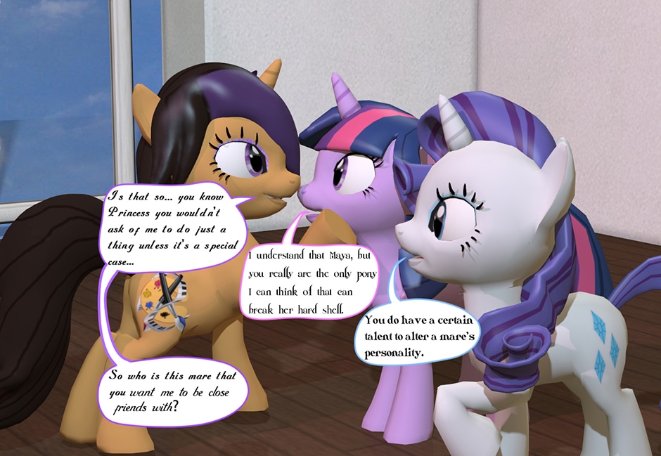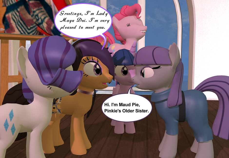 Twilight, Rarity and Pinkie Pie came to see Lady Maya Doi, to help become friends with Pinkie's Older Sister Maud Pie. They are hoping with Maya's expertise as "The Deity of Passion" she can break Maud's "hard as rock shell" so they can become better friends with her. Can Lady Maya get through to the introvert Maud so the girls can become close to their new friend? (Well, it's going to be up for the Pony Maya to do that. The Equestrian Counterpart is just as indifferent towards the meeting as Maud is.)