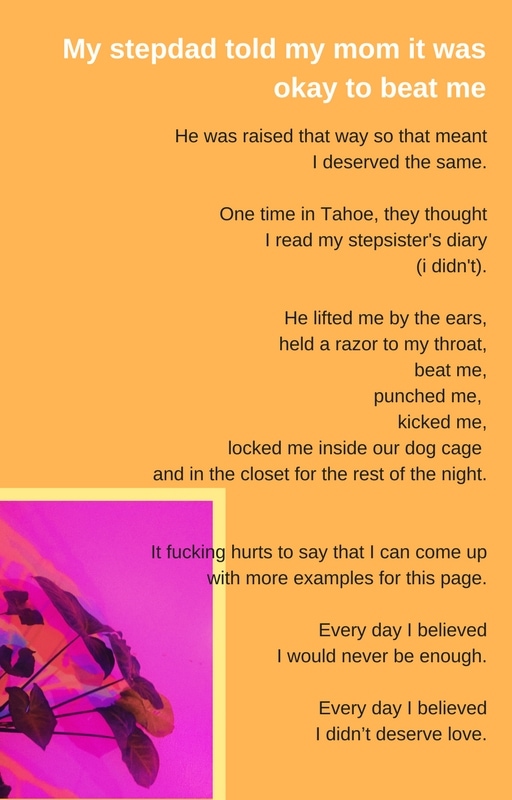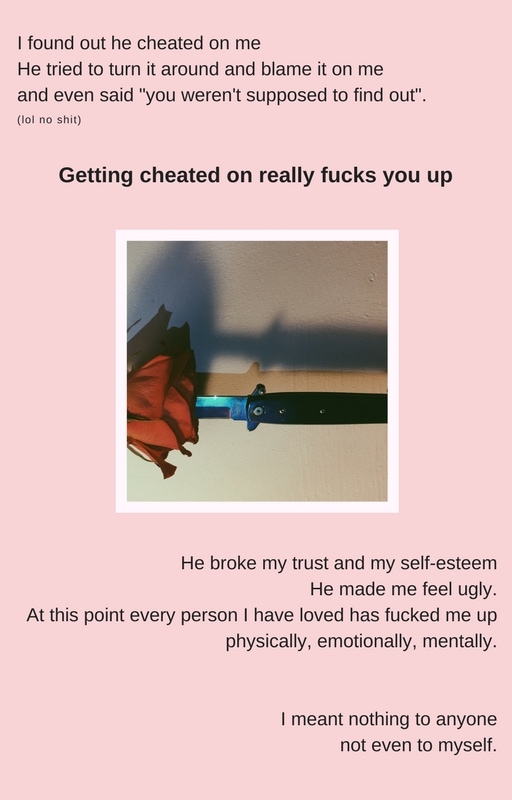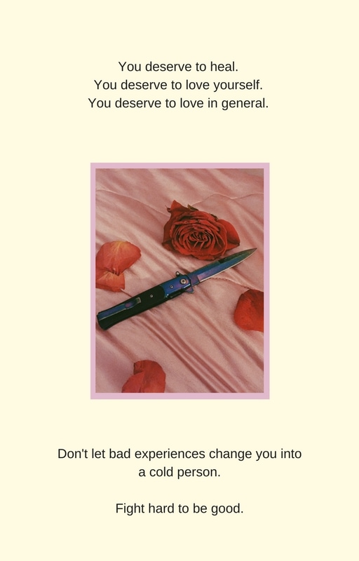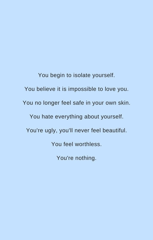 Right now I'm in a state of feeling worthless and ugly, and I know how hard is to struggle to climb up from the abyss. Thank you for opening your heart and writing this, you're speaking to a whole generation that is afraid to be frank about themselves. I hope you can heal from those wounds and know that you're an important and lovely human being.