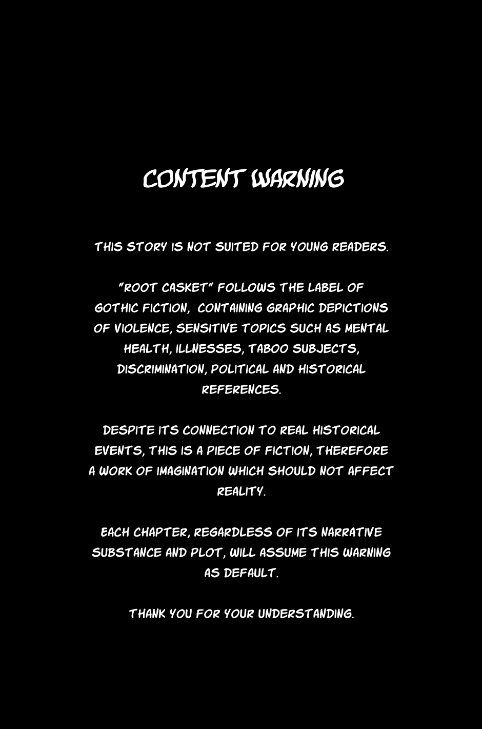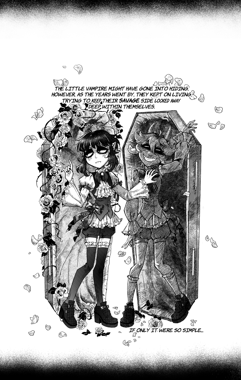Content Warning for the entire comic: This can be labelled as gothic horror, containing violent themes, unconventional characters and relationships, mental and physical illnesses, and overall actions which shouldn't be performed in real life.