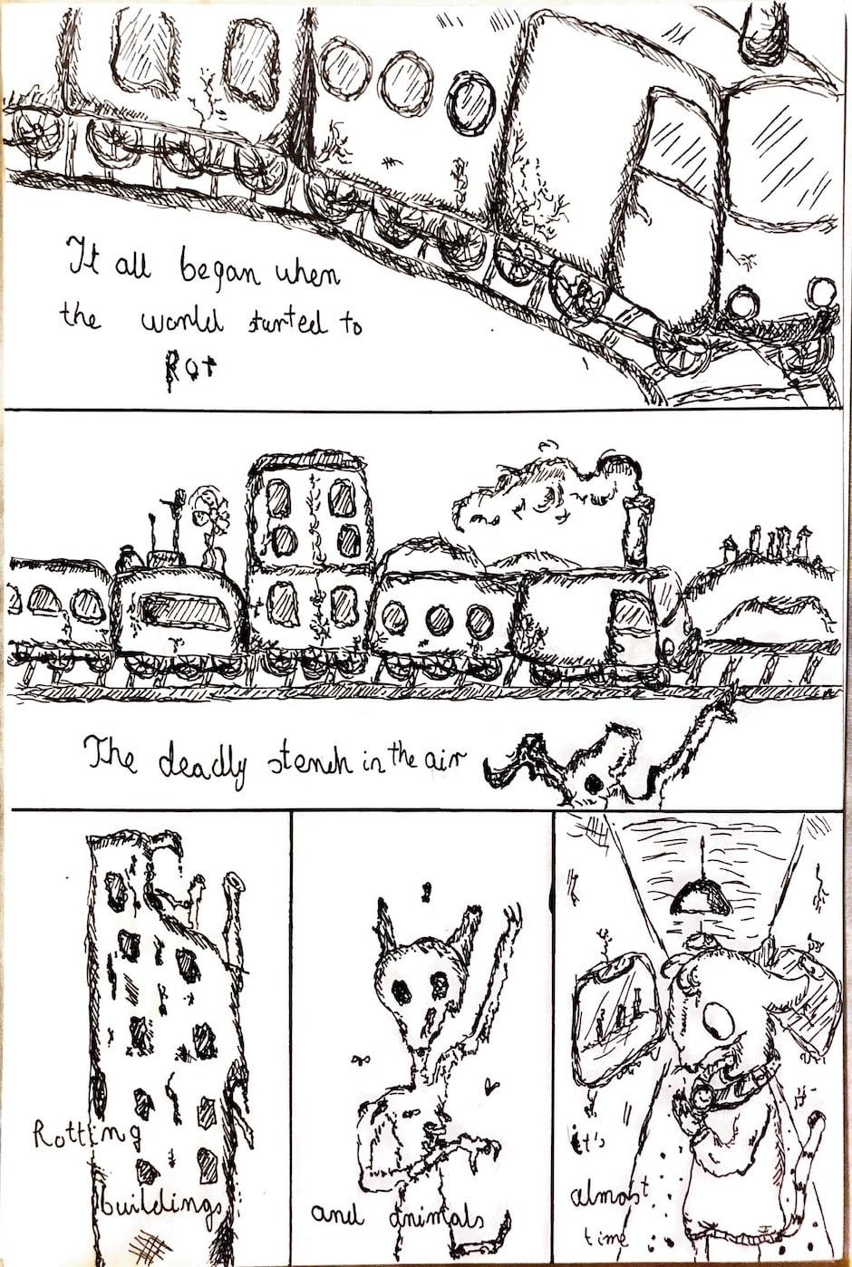 Civilizations of anthropomorphic animals are struck by a mysterious plague. Their biotechnology-based world begins to rot and poison all living things. The remnants of various species set off on a journey towards nothingness in a half-living, half-mechanical train