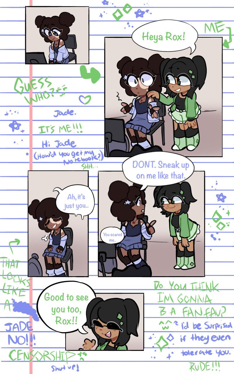 The combo of panels with notebook pages with margin scribbles is such a fun idea!!