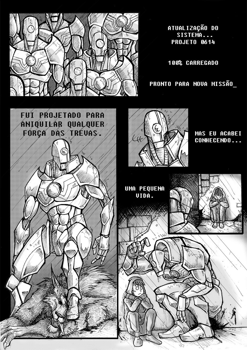 Uma pequena estória na vida de um Robô projetado para destruir seres sobrenaturais, até conhecer uma pessoa e entender um pedaço da vida de um ser vivo.