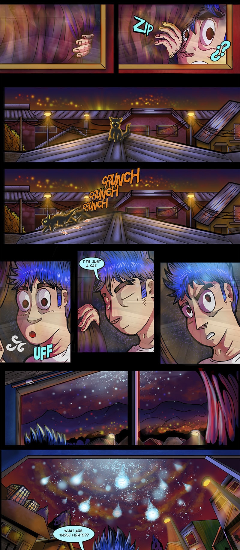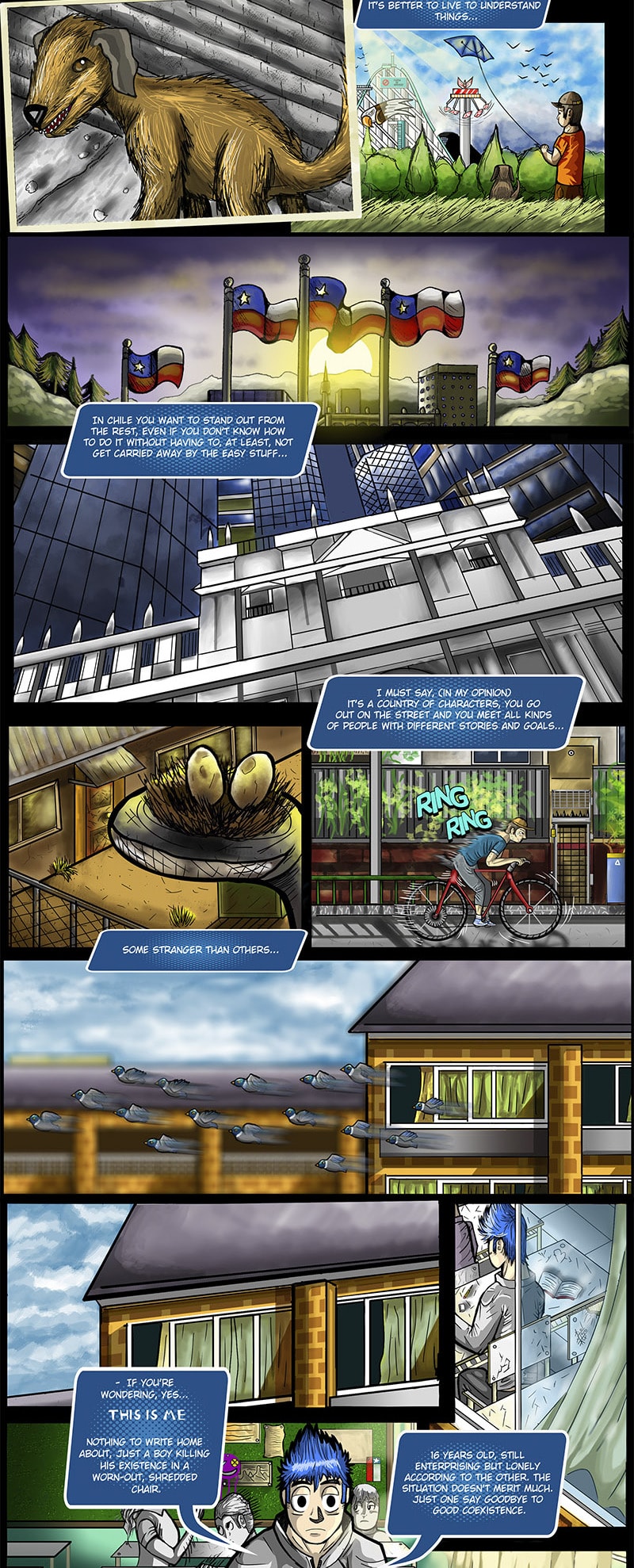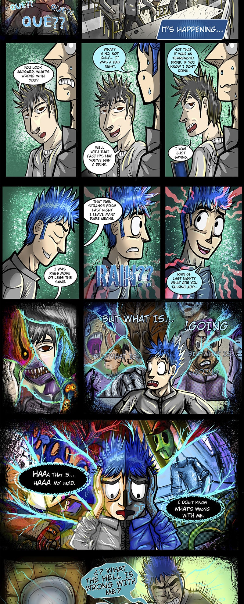Benja, a lonely and somewhat melancholic boy, shows us a little of his daily life at school, until that same night a strange rain falls on the city and a strange man in a blue raincoat appears among the lights...