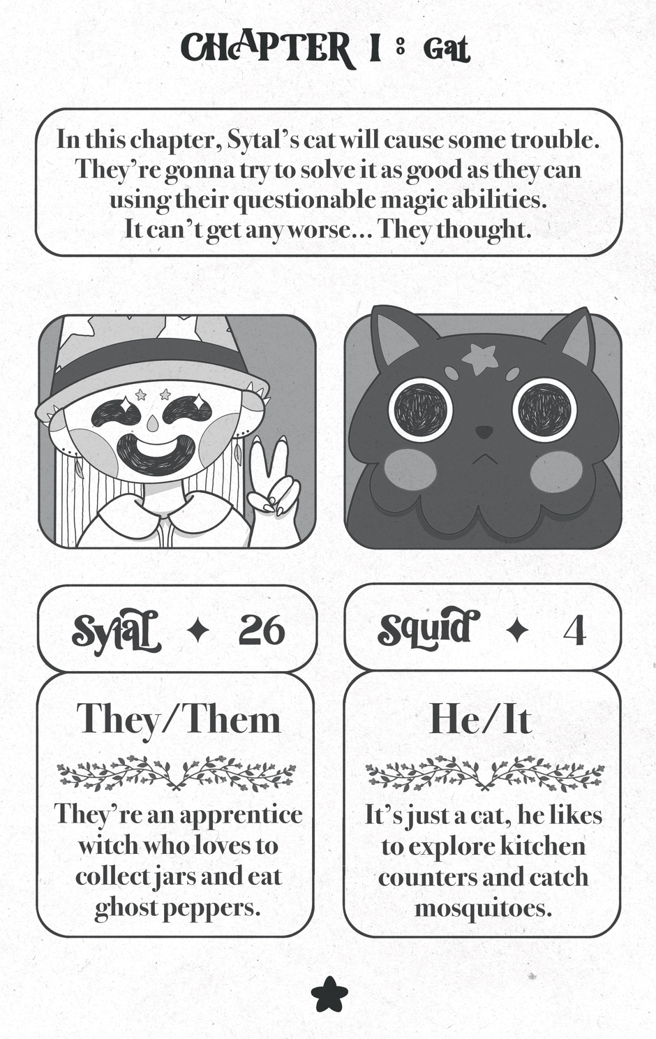 Sytal is my OC, they're a witch who lives in the forest but they face the daily life issues that anyone of us could have (from having their cat turned into a rat to running out of batteries for their magic wand).