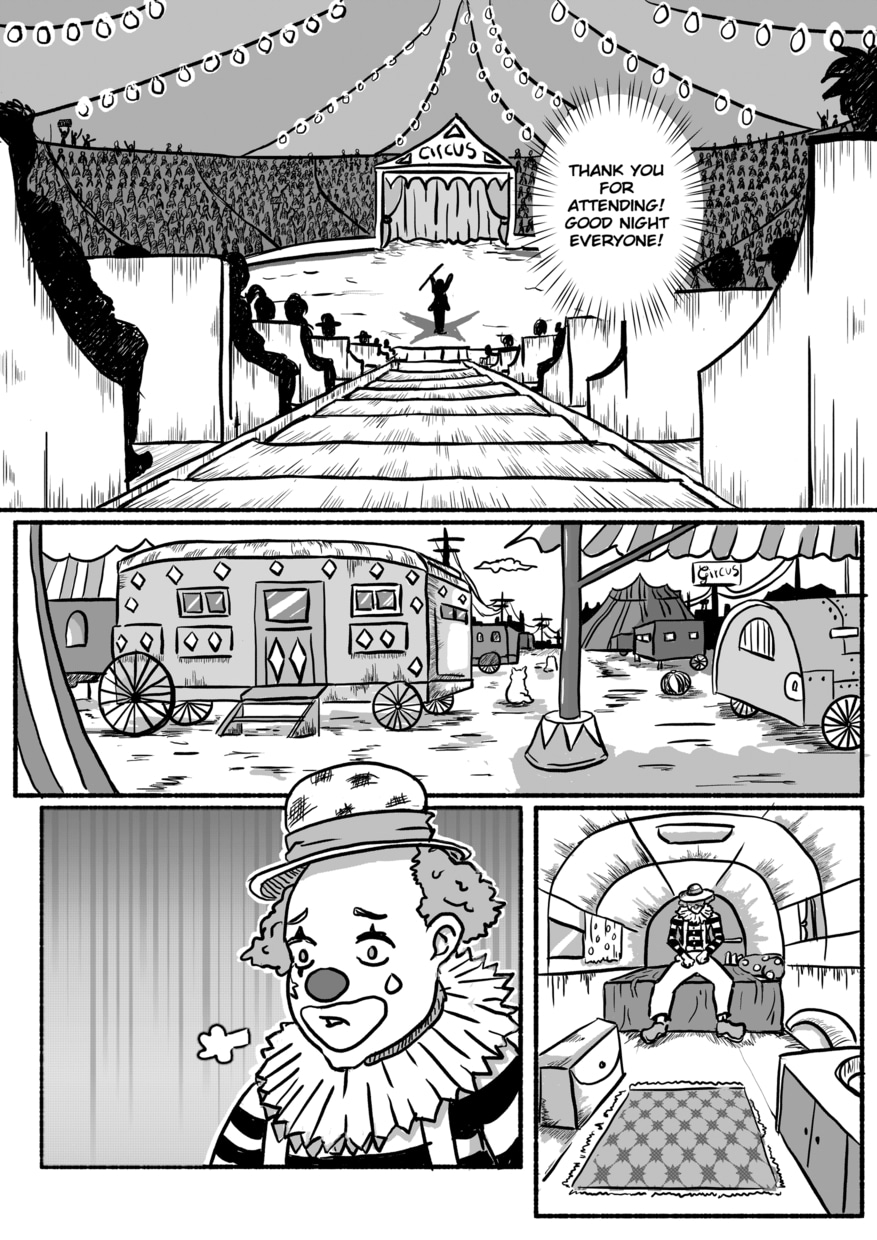 A short story about a clown who lost his smile.