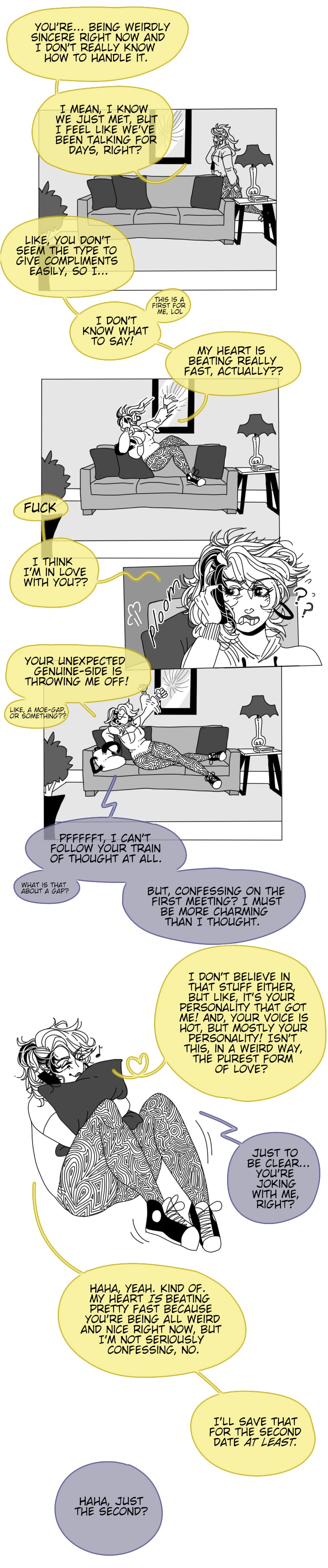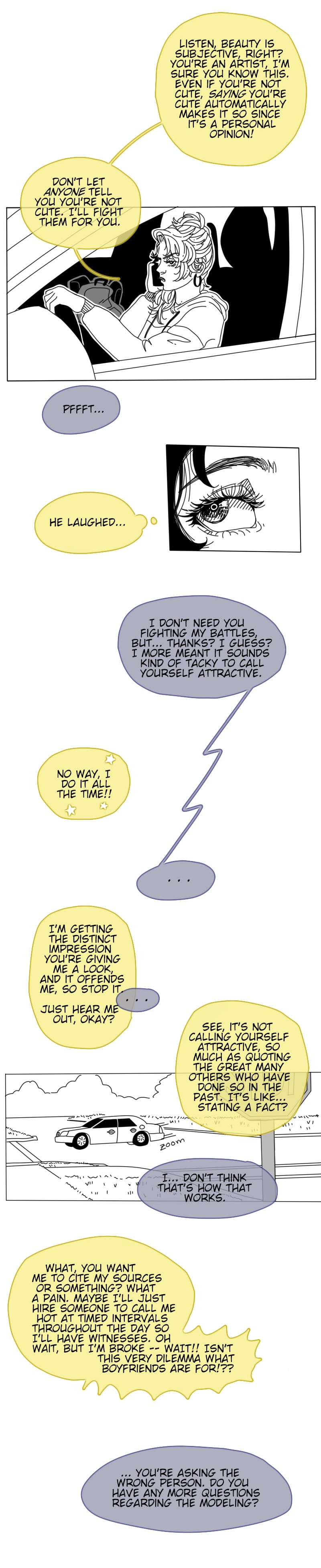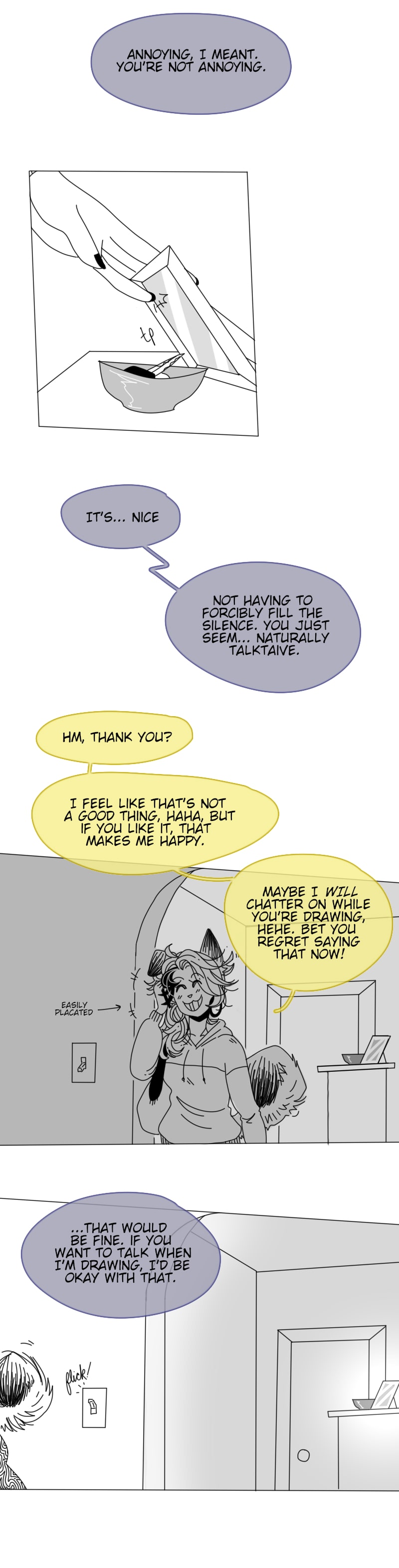 That said, I'm still working out the kinks! Is the font too big, or are the colored text bubbles too distracting? Idk, you tell me!