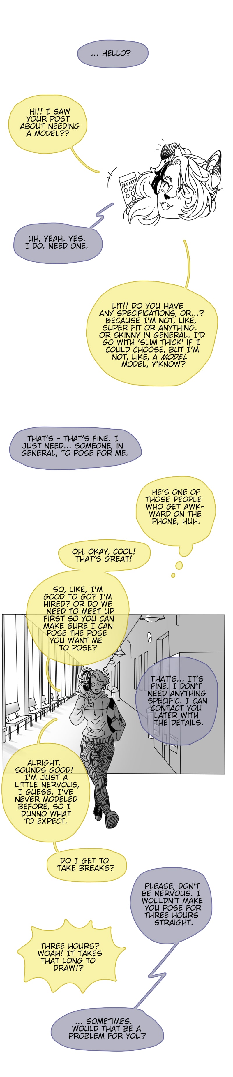 Or: Reclusive artist meets outgoing, bordering-on-obnoxious model. They hit it off.