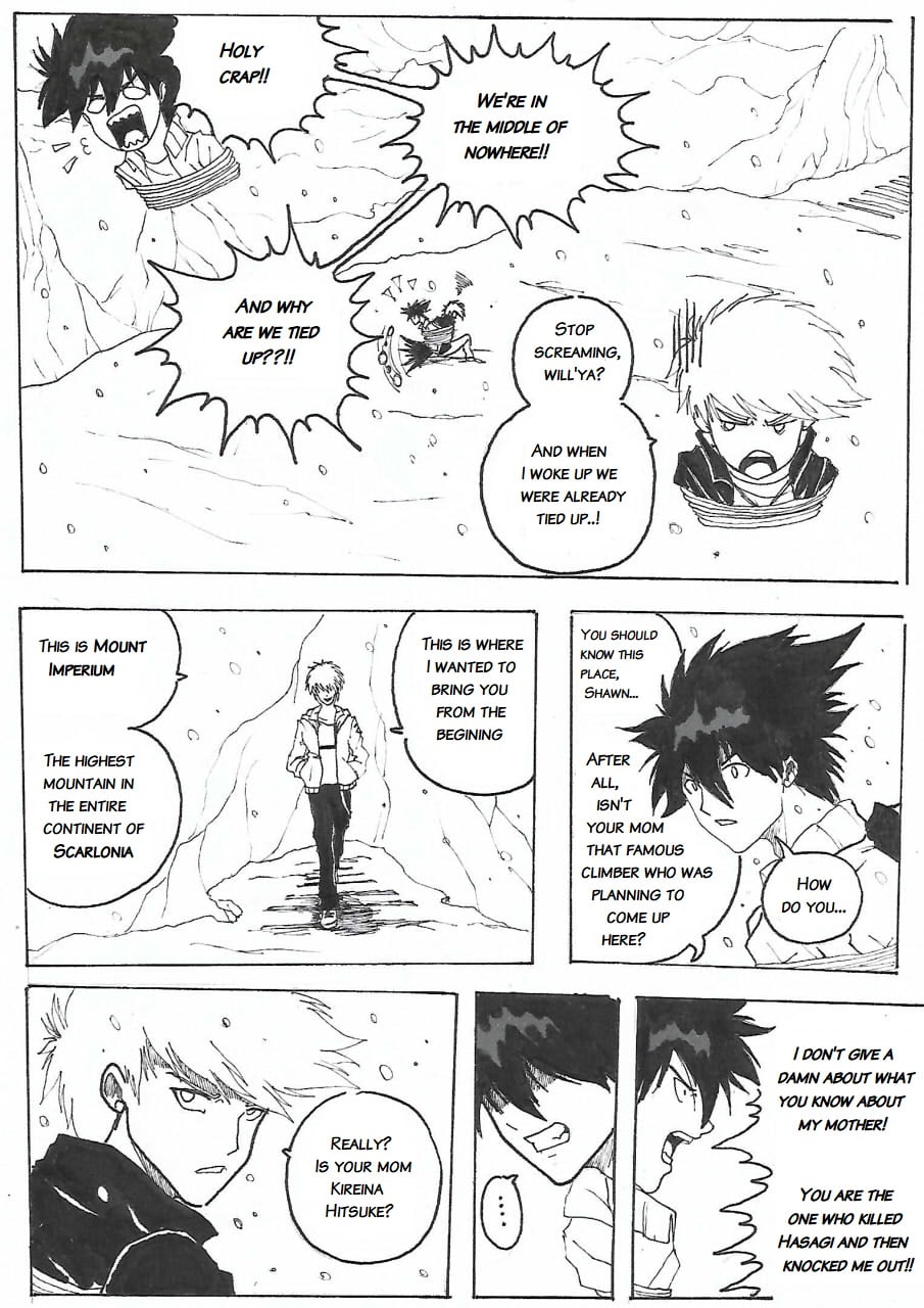 Scarlonia is a manga that has a soft and subtle artstyle focused on adventure, comedy and action. The story goes around Shawn Hitsuke who lives in a universe ruled by multiple entities with specific abilities and domains. Plot-twists, battles and a good laughter are all part of that western manga with unique dialogs.