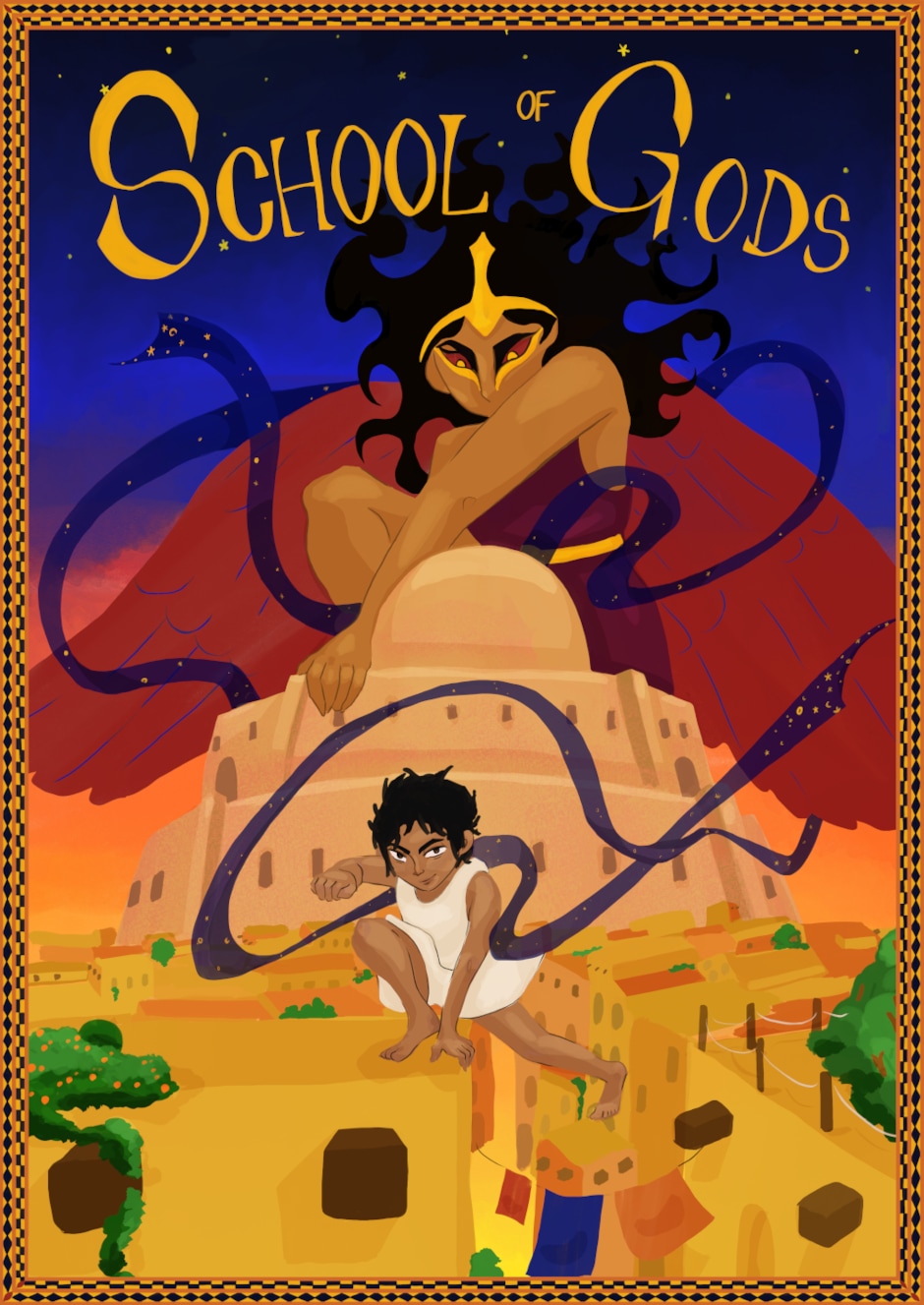 Orón is a young inhabitant of Ninive, Mesopotamia. She loves nothing as much as sneaking into forbidden places, but when she annoys the city guards once too often, she is forced to follow meditation classes at the School of Gods. Not only is it boring to death, but her fellow students are dumb privileged kids. Gods are nice, in general, especially Adad who blows cool tornados, but why are there more and more of them? And why is the goddess Ishtar furious against everyone?