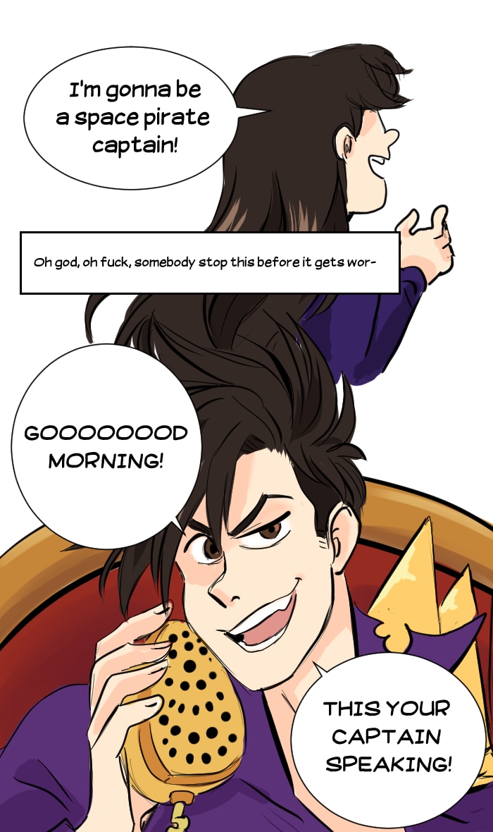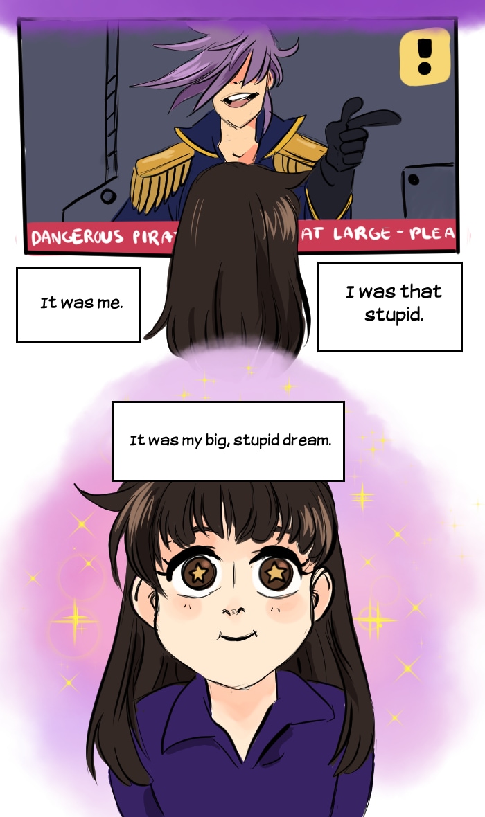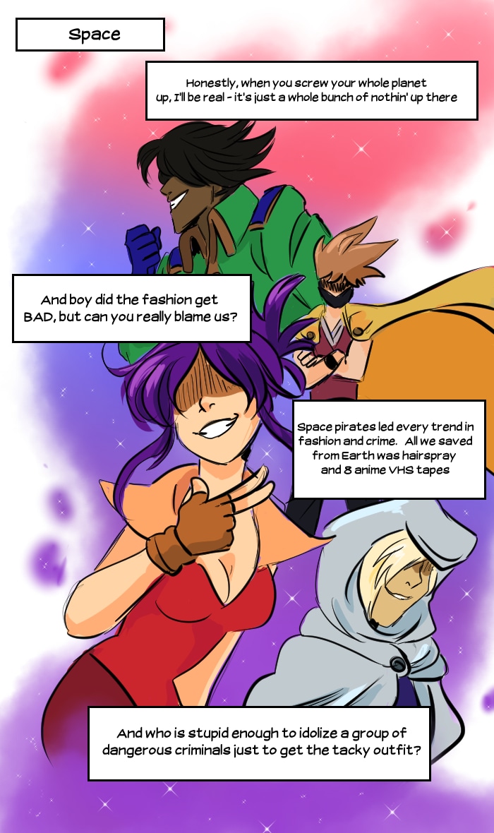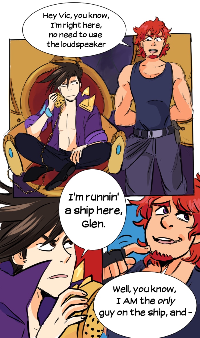 In the distant future, Victor Imai runs the least successful space pirate crew in the galaxy. Hot on the trail of the mythical artifact "Seaglass", Victor and his tiny crew combine their braincells to make the impossible possible. Updates every Friday, with extra pages throughout the week depending on production speed! Join the Seaglass discord! https://discord.gg/7Gdaer5