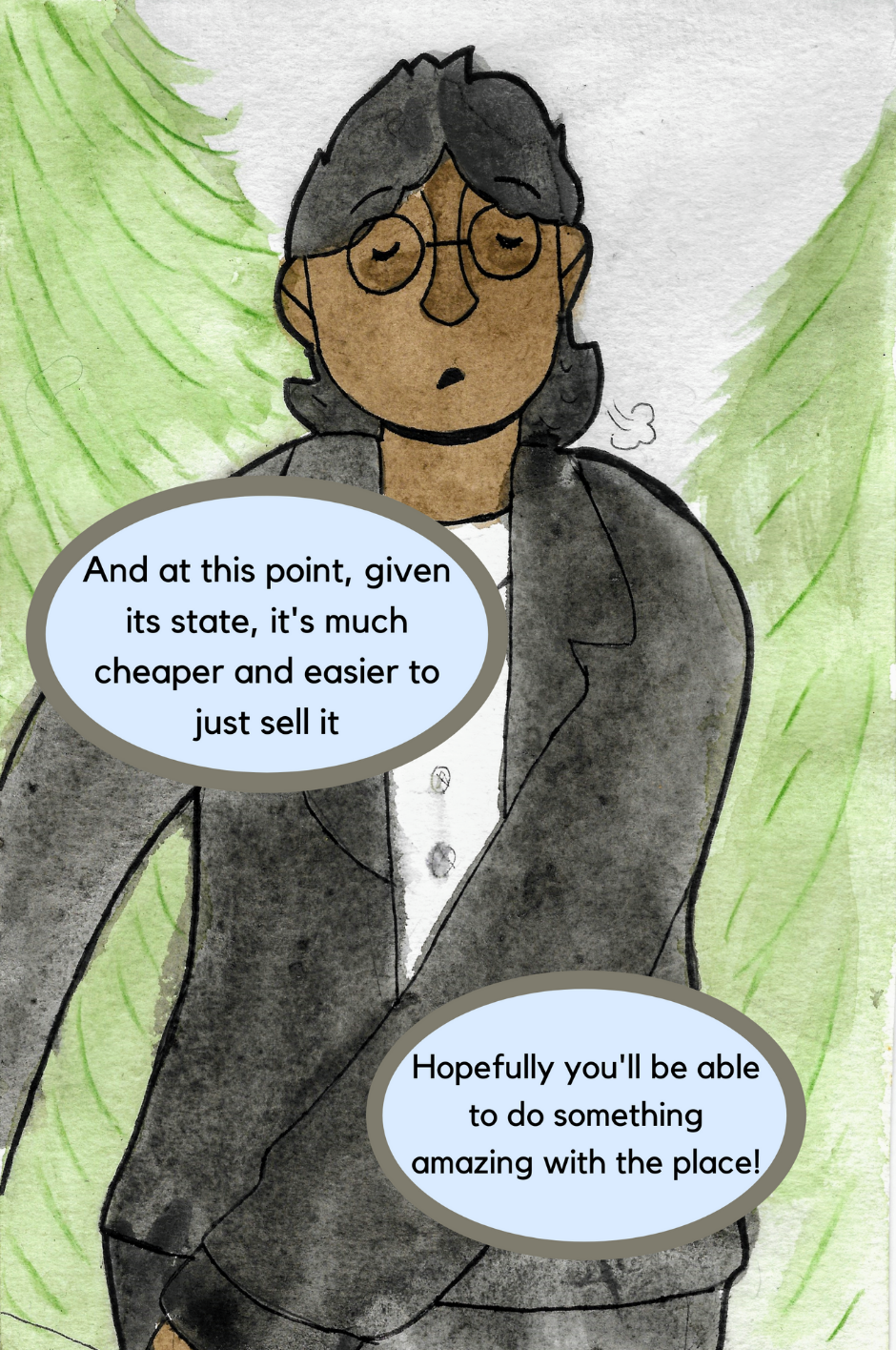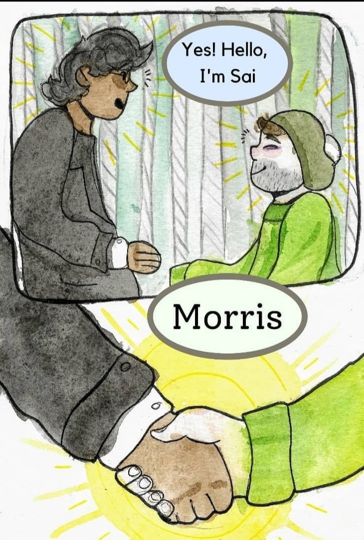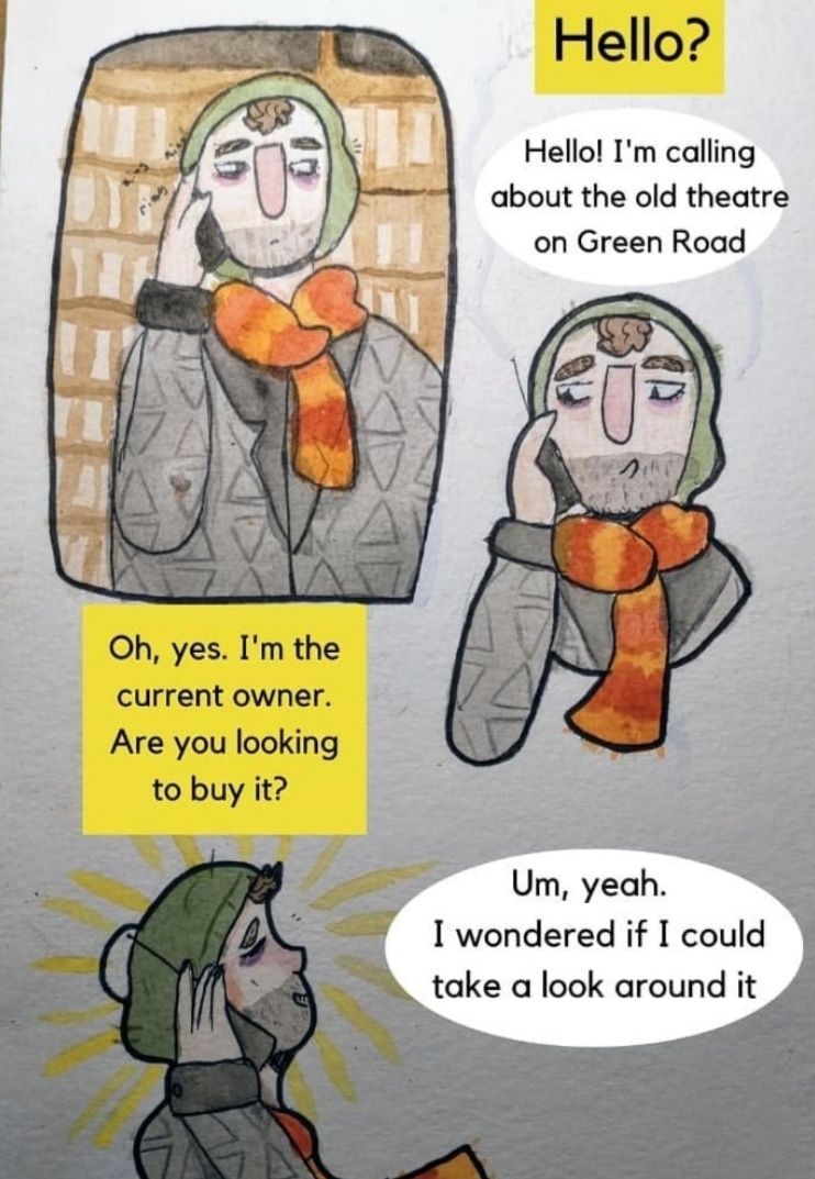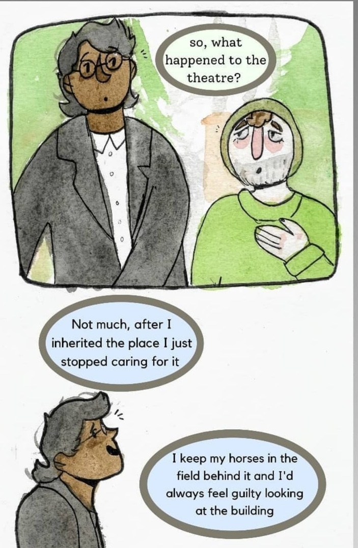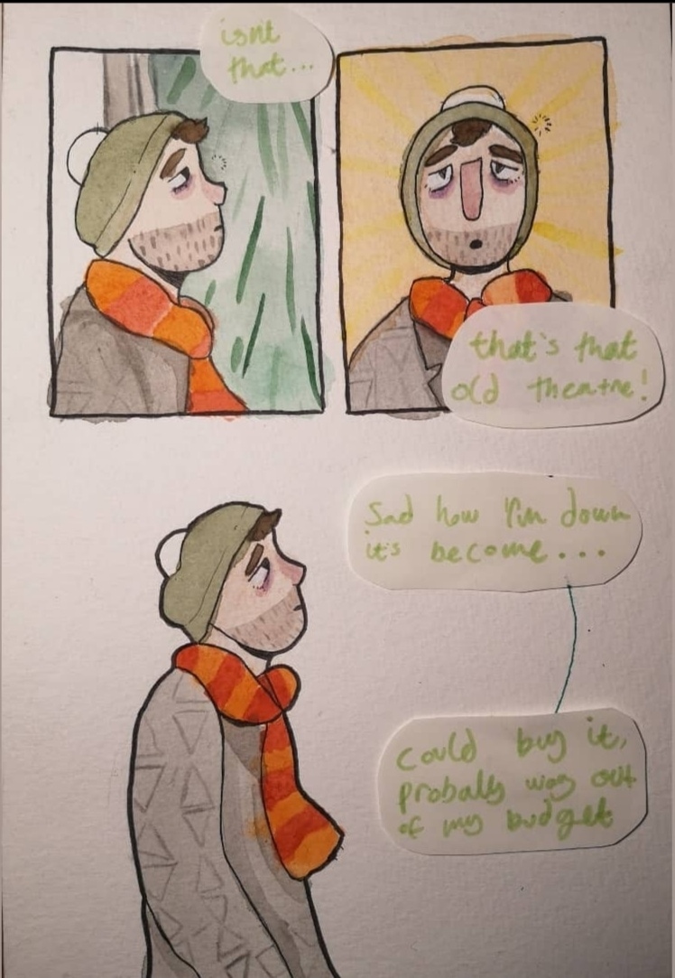 Morris spots of old theatre on his morning walk and meets Sai.