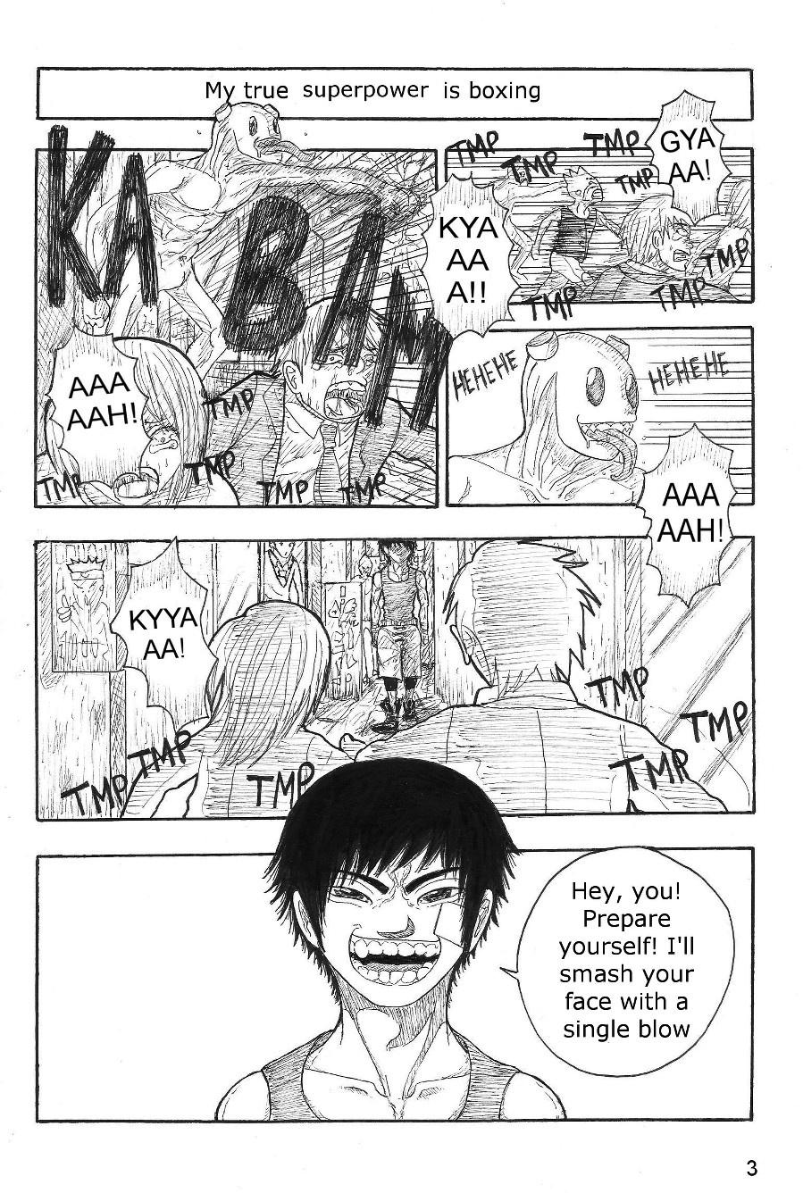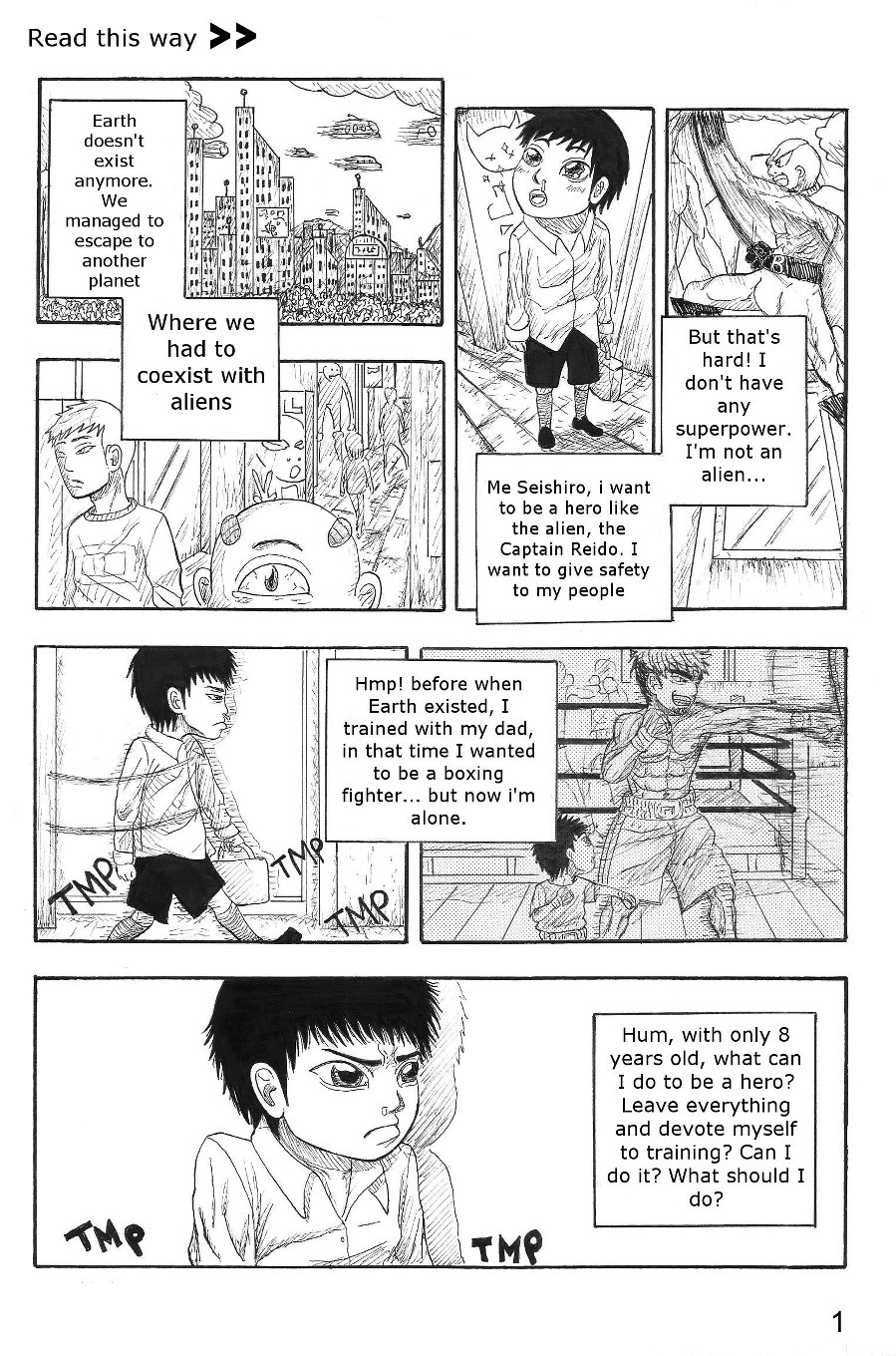 This just a short story about a kid who don't have super-power and want to become a hero