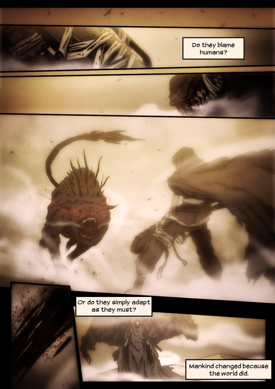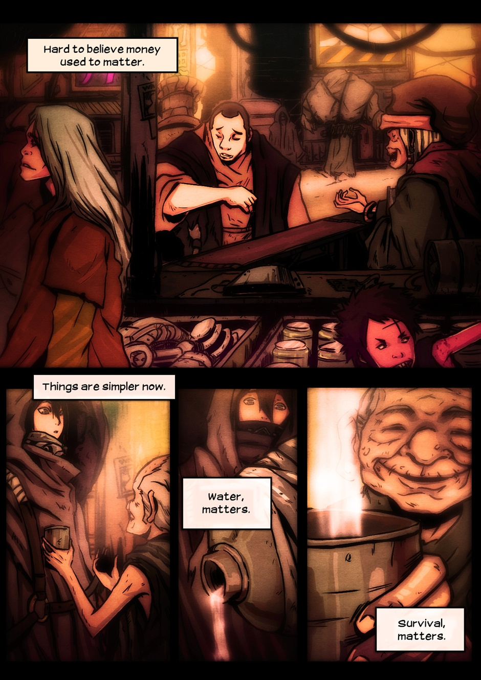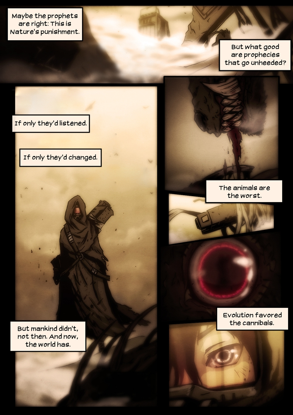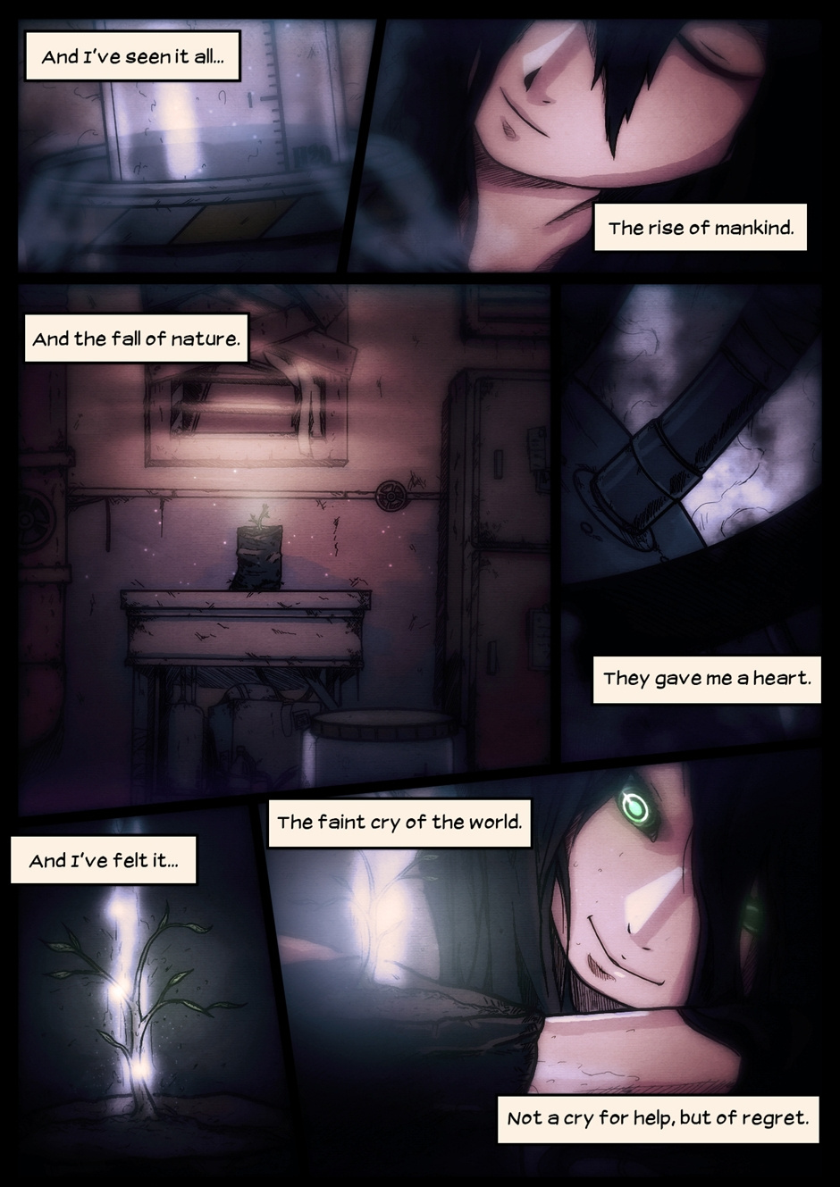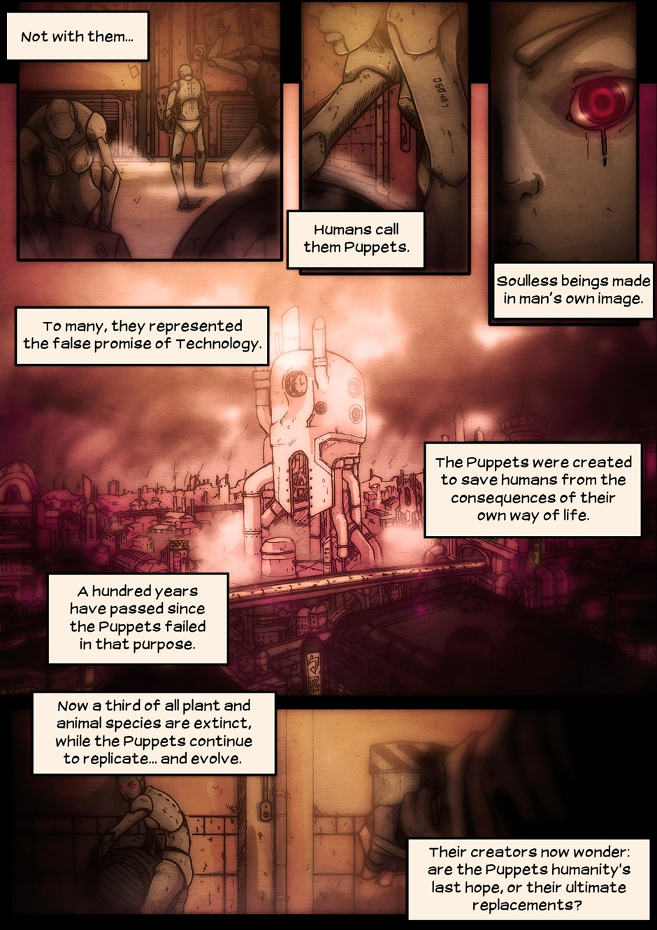 "Sentience" is a short, ten page comic about a post-apocalyptic future. Story by A.J. Hecali, pencils by Paul Quiroga, inking and coloring by Koi Carreon.