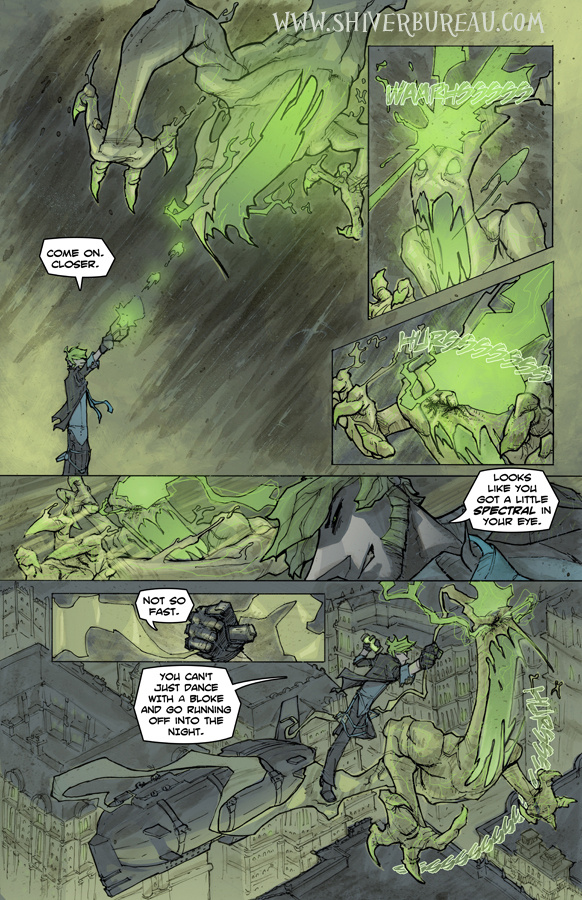 The world is overrun with Spooks, ghosts unable to crossover into the afterlife. There are a few rare people called Inspectres that are able to shove Spooks into the afterlife. Inspectres belong to the Shiver Bureau, a self governed group that have gained considerable power over the years due to their abilities.