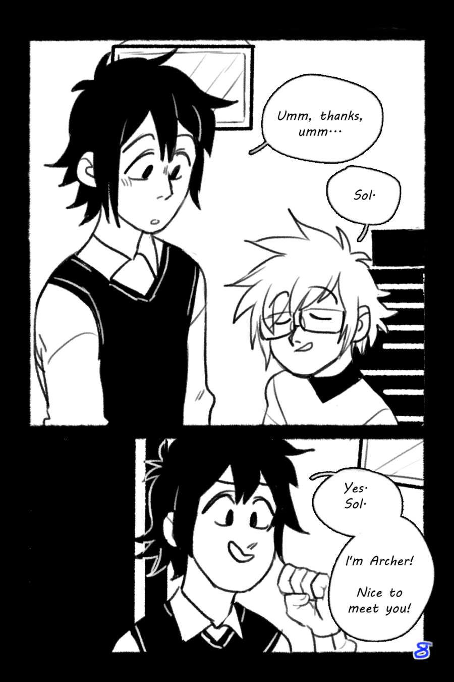 This is a short story, or one shot, and it connects two different larger stories of mine. It is 10 pages long. I am a beginner at making comics and I am posting this up as a first step. I hope I can work to make better and longer comics in the future.