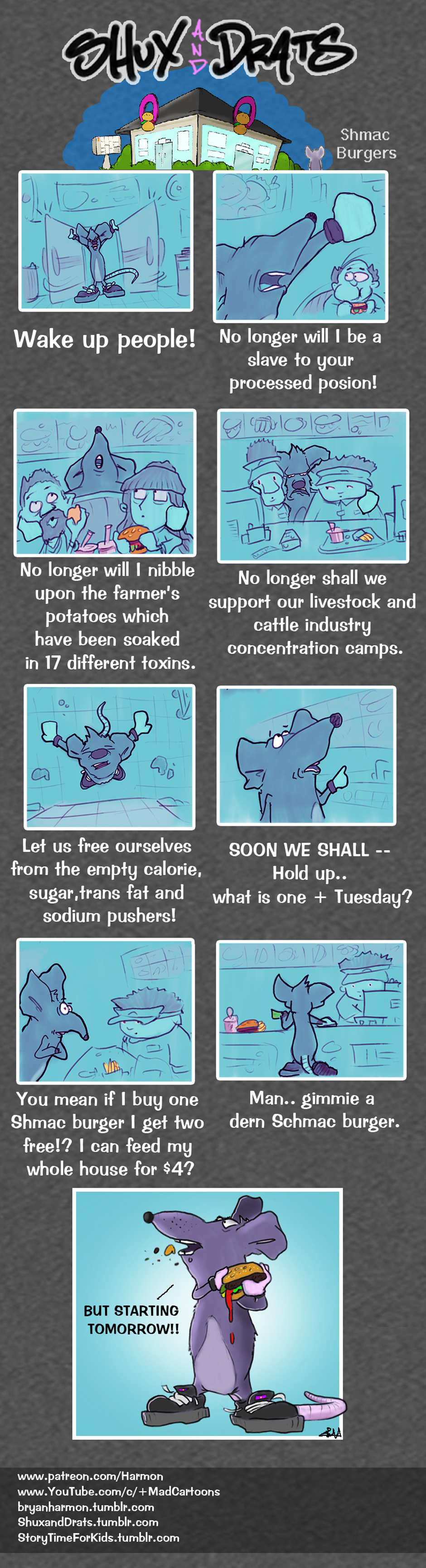 Drats hits the local Shmac Burger to enlighten the customers on what it is they are actually eating.