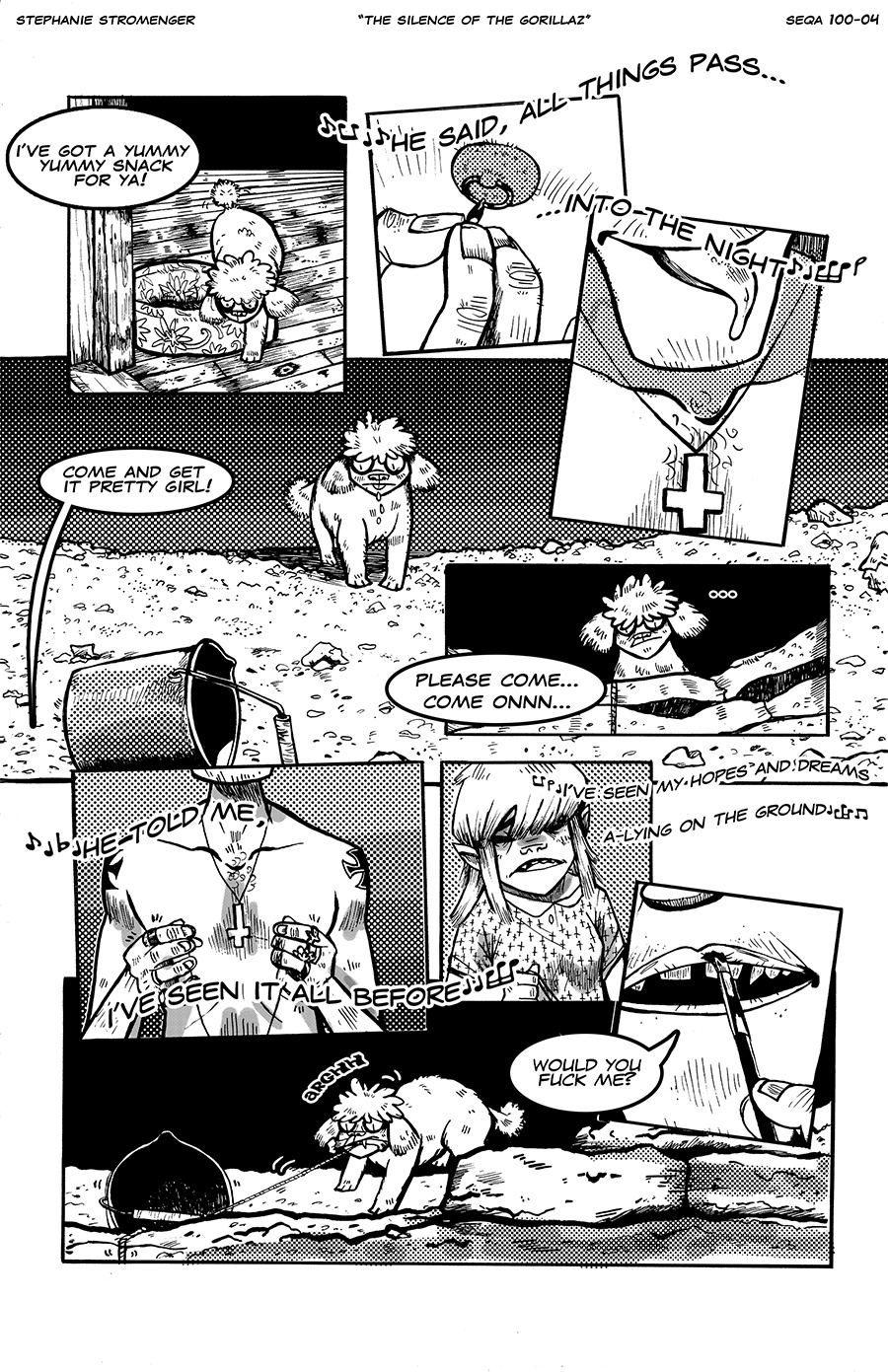 My final for intro to sequential art! We had to recreate a favorite movie scene in the style of a favorite comic artist. (Silence of the Lambs + Jamie Hewlett)
