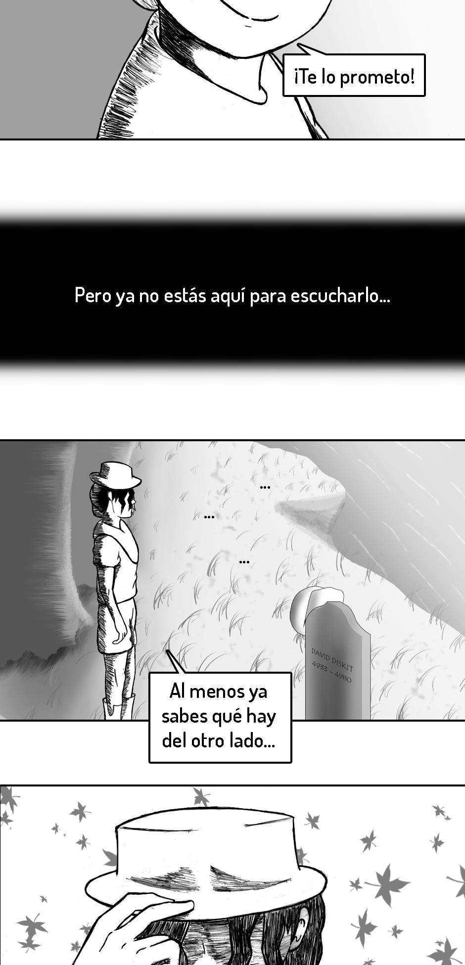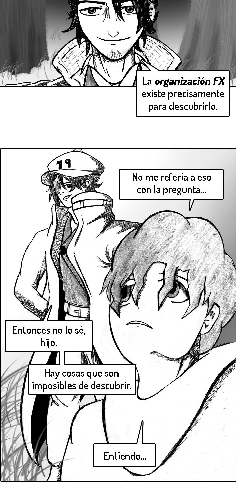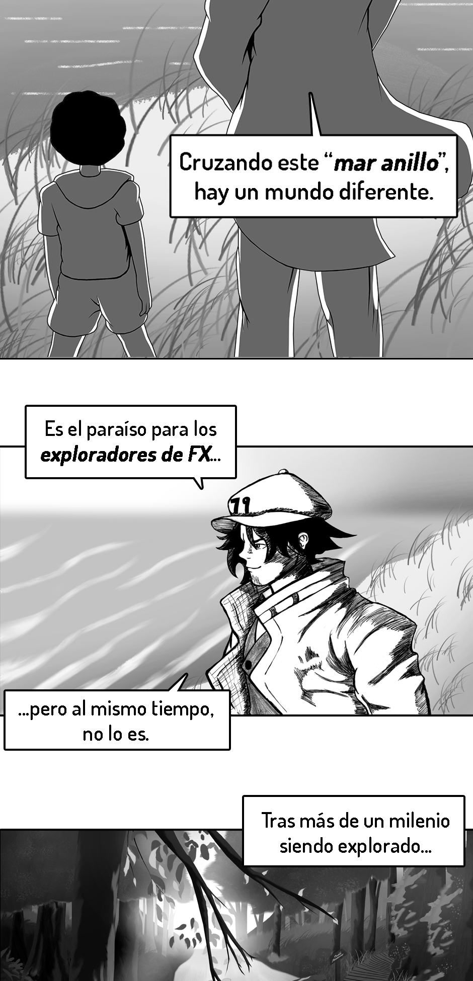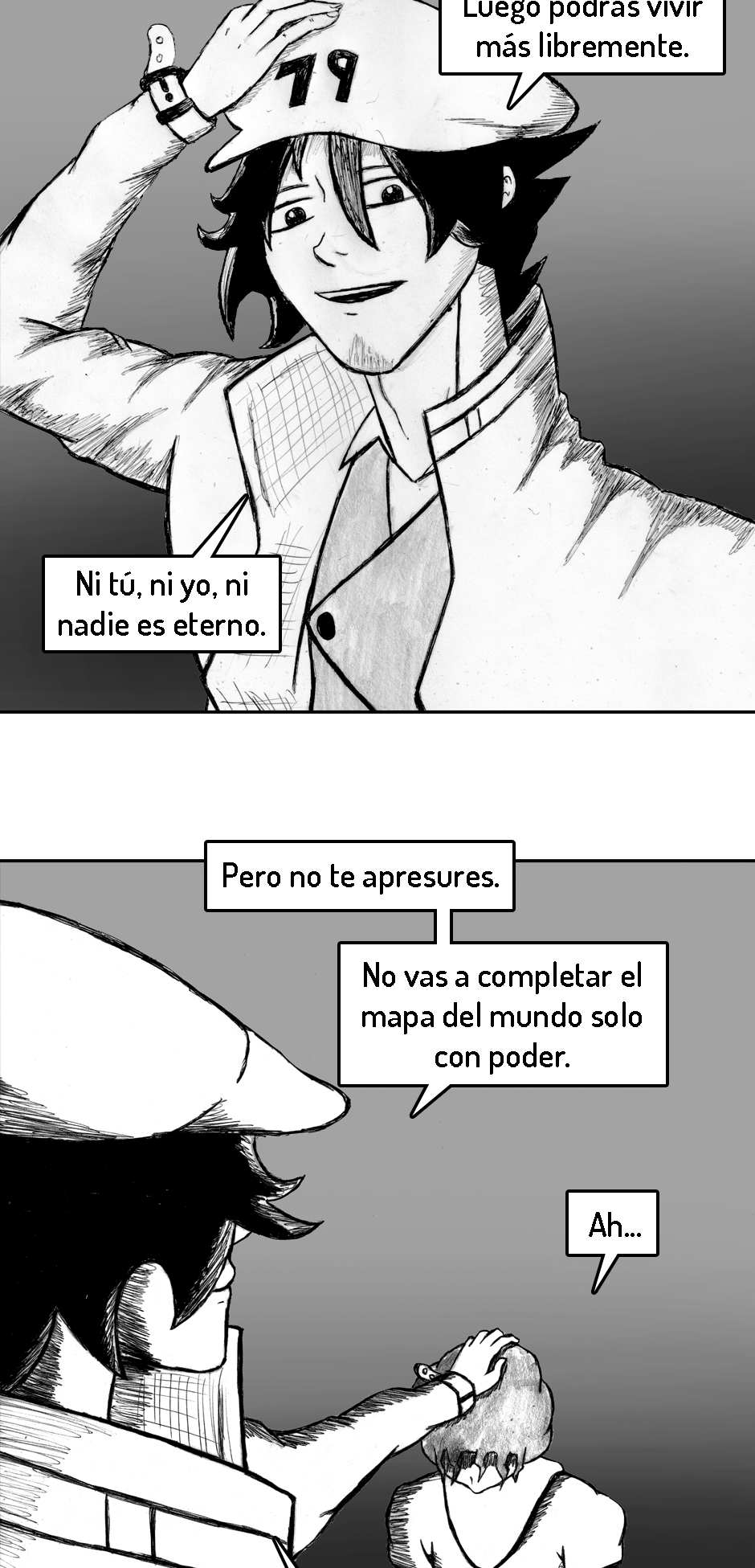 PD (3 años después de haber iniciado): Ya que este es y será mi primer y único comic de por vida, el inicio no está del todo pulido. Fui mejorando poco a poco. A medida que avances en la historia te vas a dar cuenta de como mejoré tanto mi dibujo como mi escritura.