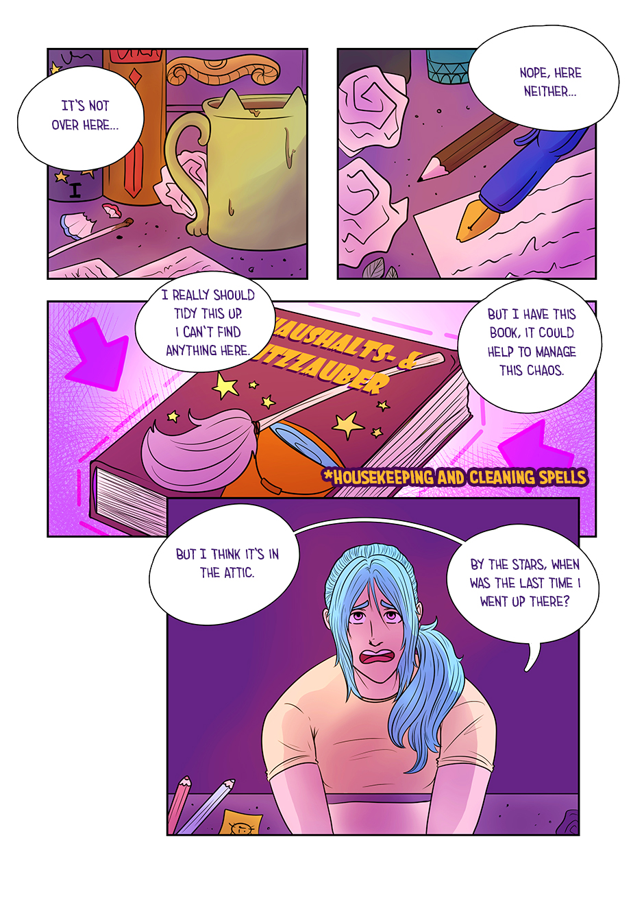 The wizard just wanted to tidy up his chaotic desk with some magical assistance, but after retrieving the handy book on household spells from the attic, everything suddenly went wrong.