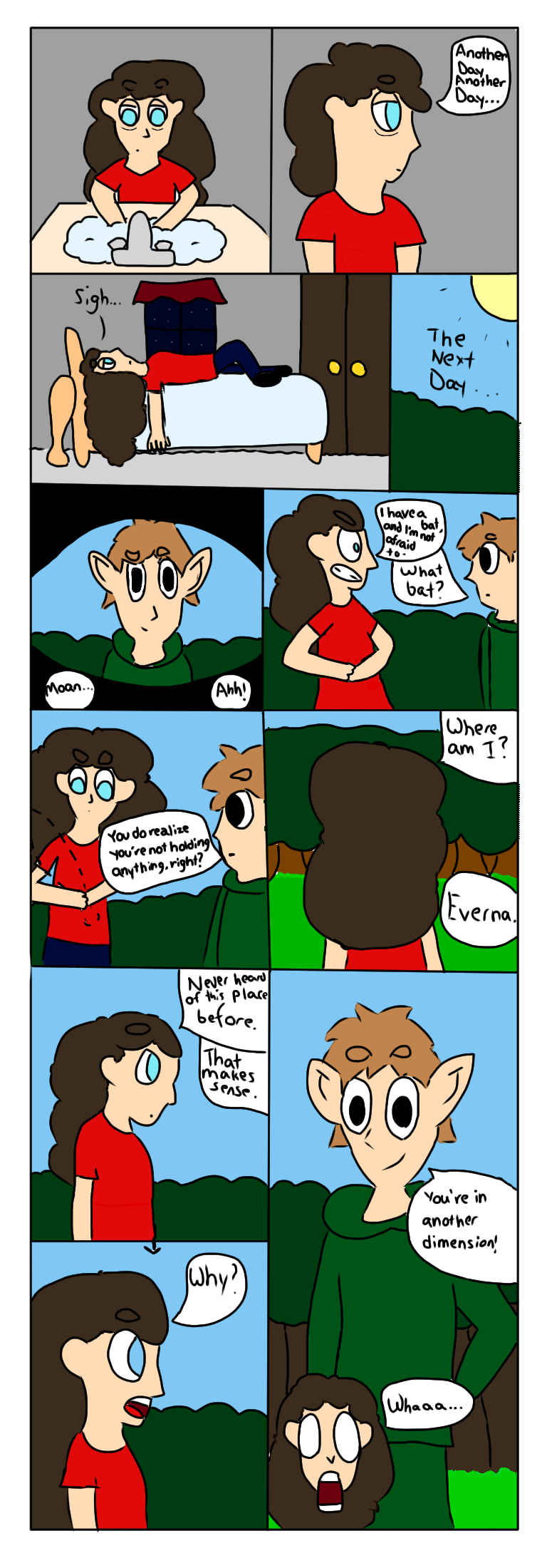 A 16 year old girl stressed out by school wakes up to find she is in a whole other world. With the help of an elf friend and magical powers, she fights the mysterious shadows plaguing the land.