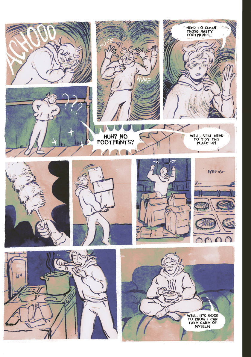 the text is small so hard to read but it's so pretty! the type of comic I would want to hold in my hands if I could