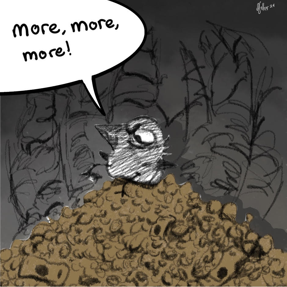 Two critter friends amuse themselves by doing what wild animals do, while also arguing the morality of their choices.