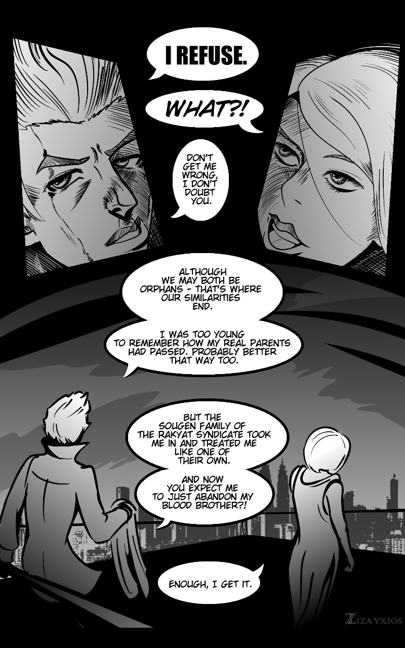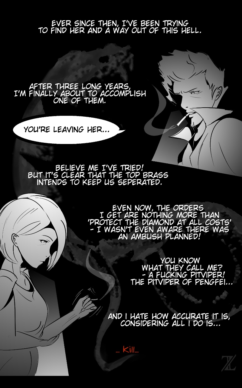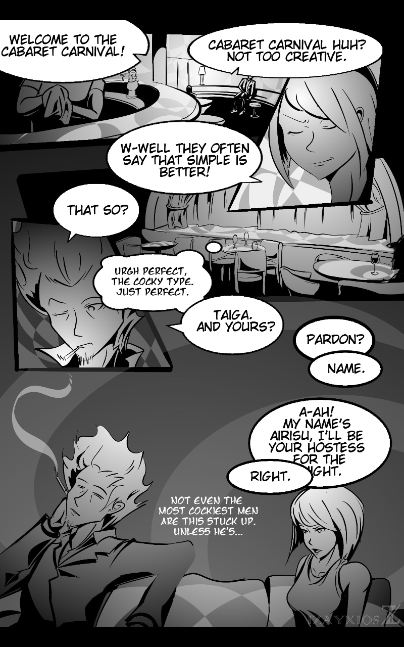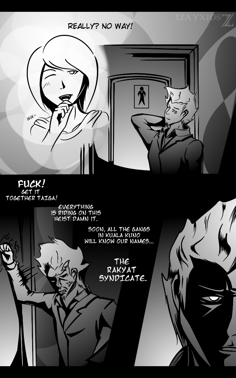Snake-Eyed Tiger is a crime drama comic based in the fictional city of Kuala Kuno. Chapter 1: Cabaret Carnival Craze follows yakuza member Taiga as he infiltrates a rival gang's turf for a quick in-and-out diamond heist. However, after meeting femme fatale Airisu, the events that transpired was anything but stealthy...