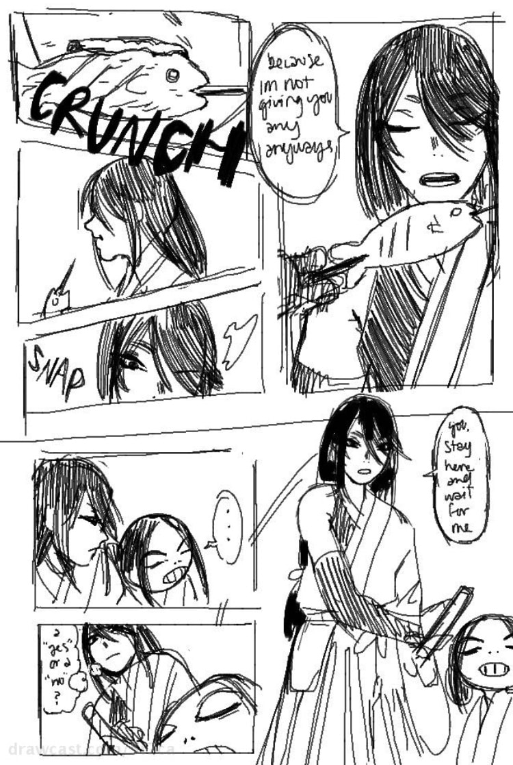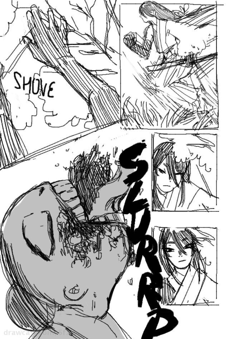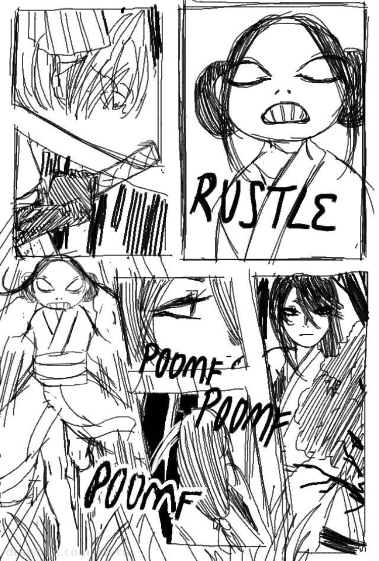 Backstory: It’s ancient Japan and babies are being born with what the people call “curses”, they are haunted by a spirit at birth and bound to them until death. People fear these curses so the ones who are born with them are often killed immediately. However a loving father (and samurai) chose to let his cursed daughter live and raise her out in the country where she isn’t found. As time goes on, her father eventually dies and the now-grown-up daughter has decided to set out on a journey to find something or someone that can rid of her curse, although no such thing has ever been heard of. This little short takes place along the samurai’s daughter’s journey.