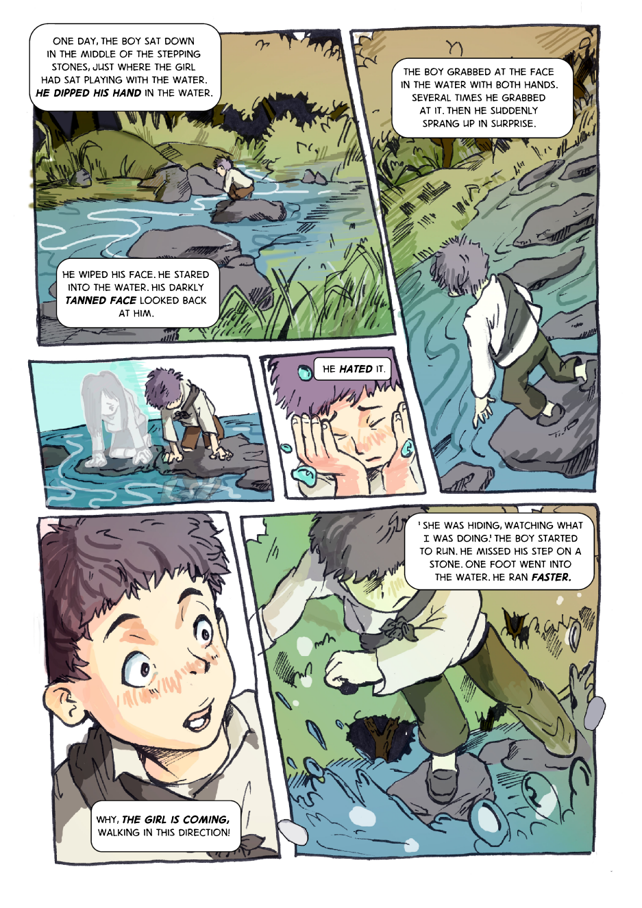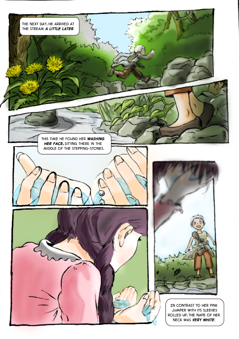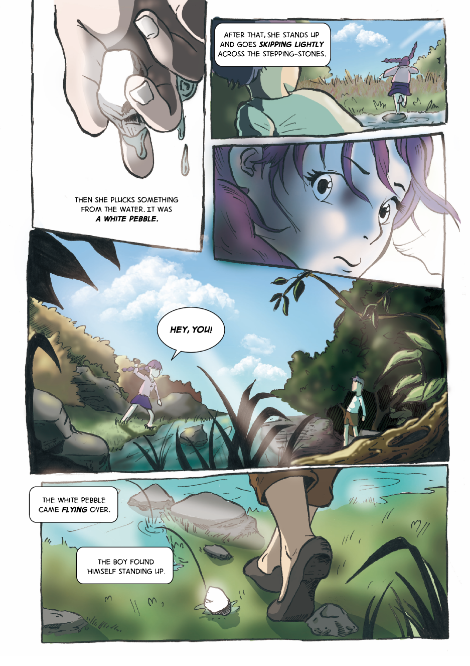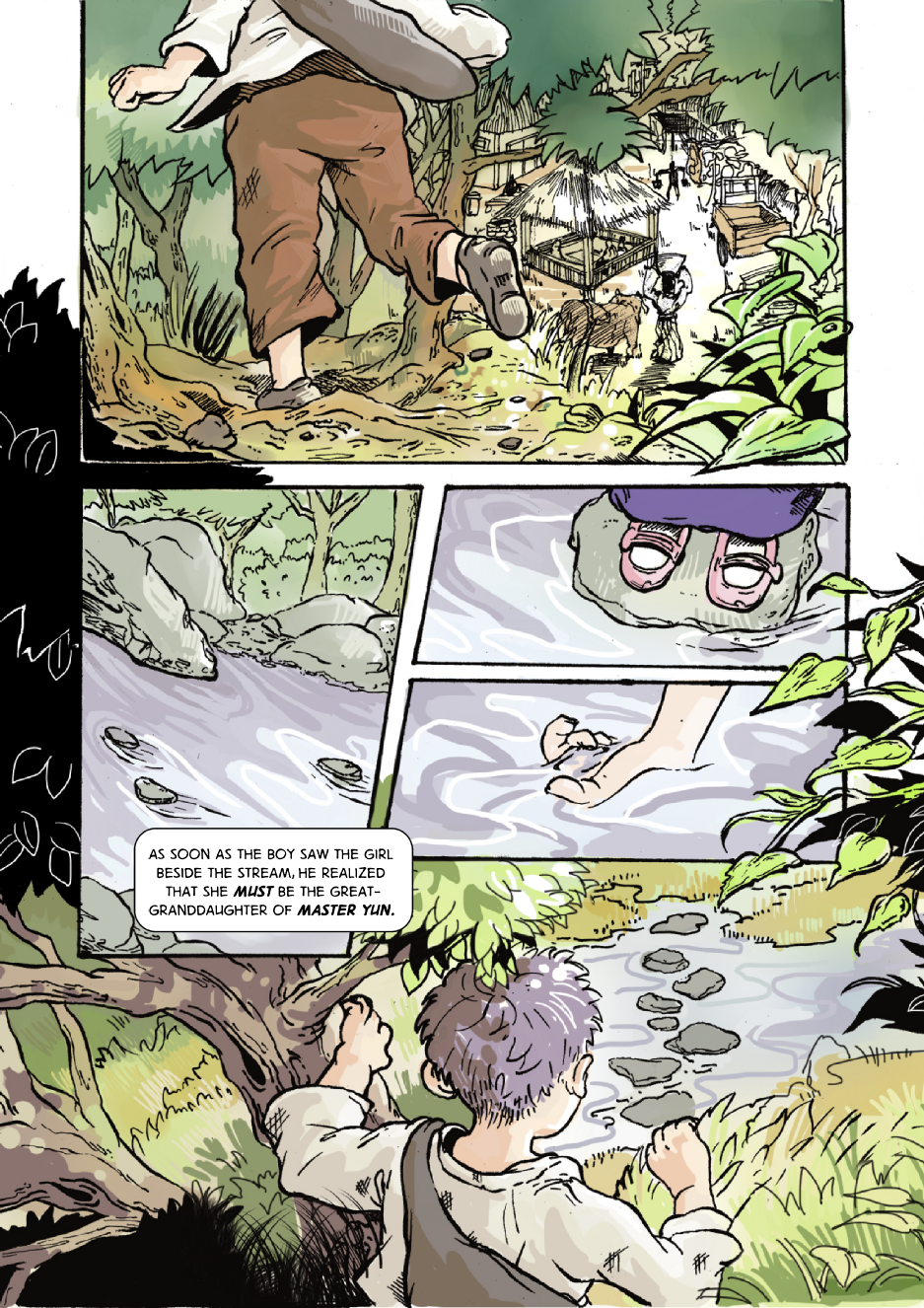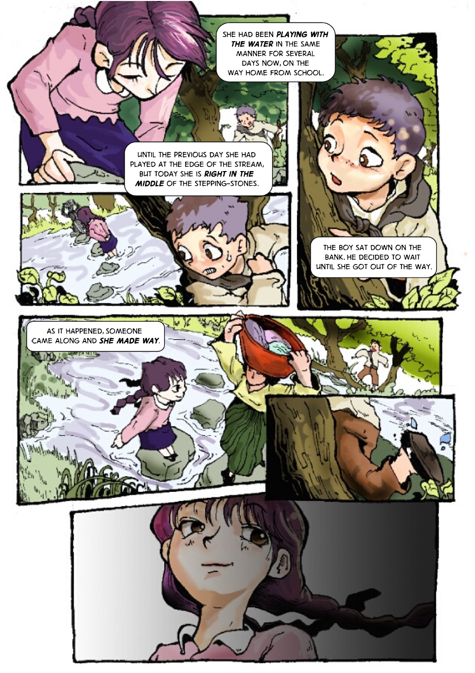 In the Korean countryside, a boy has a fortuitous encounter with a girl near a small stream. We are unaware of their names.