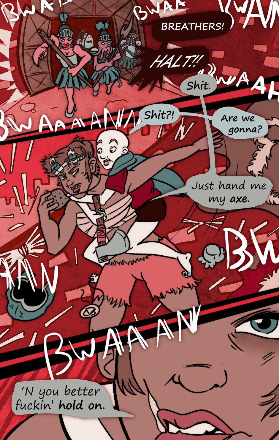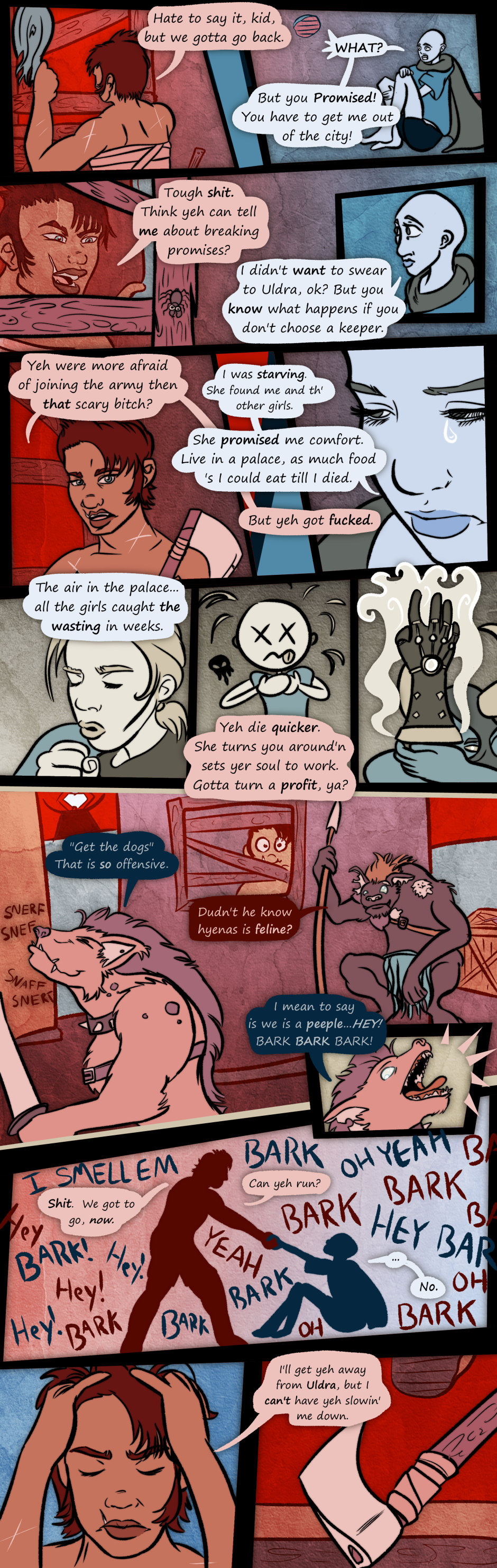 Prepare to get a fetish unlocked. Grinn fights and loves her way through surviving in a land where death has been outlawed, and dying leads to eternal servitude to the corrupt Keepers. Featuring a very intense story and world, handled with immature humor. Never, ever safe for work.
