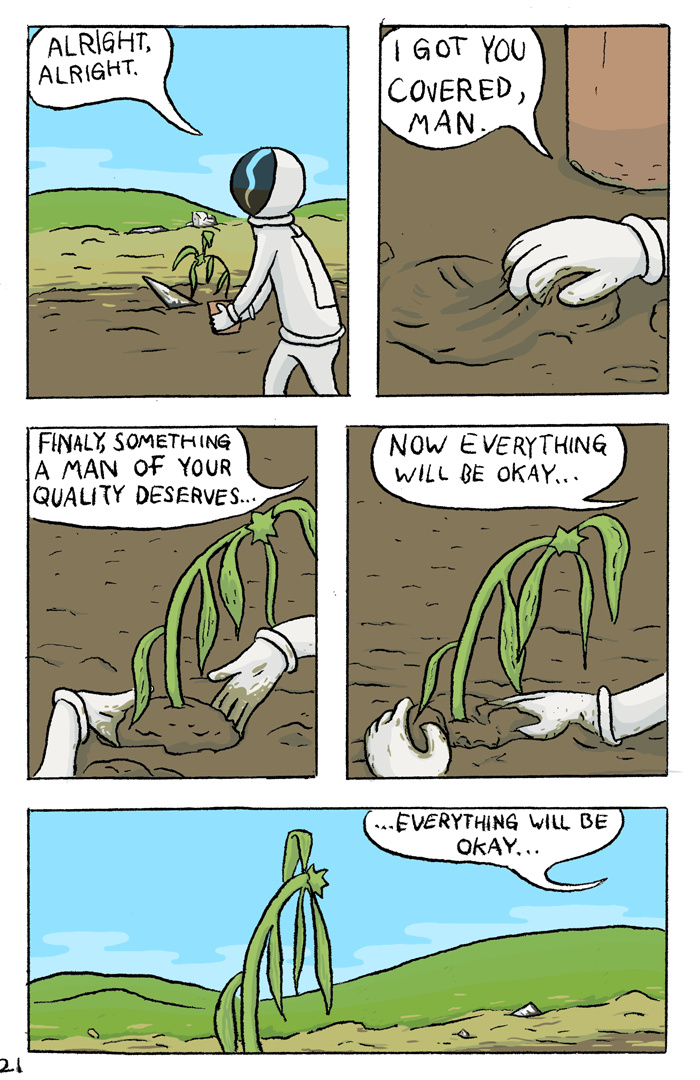 An astronaut goes crazy and talks to a plant.