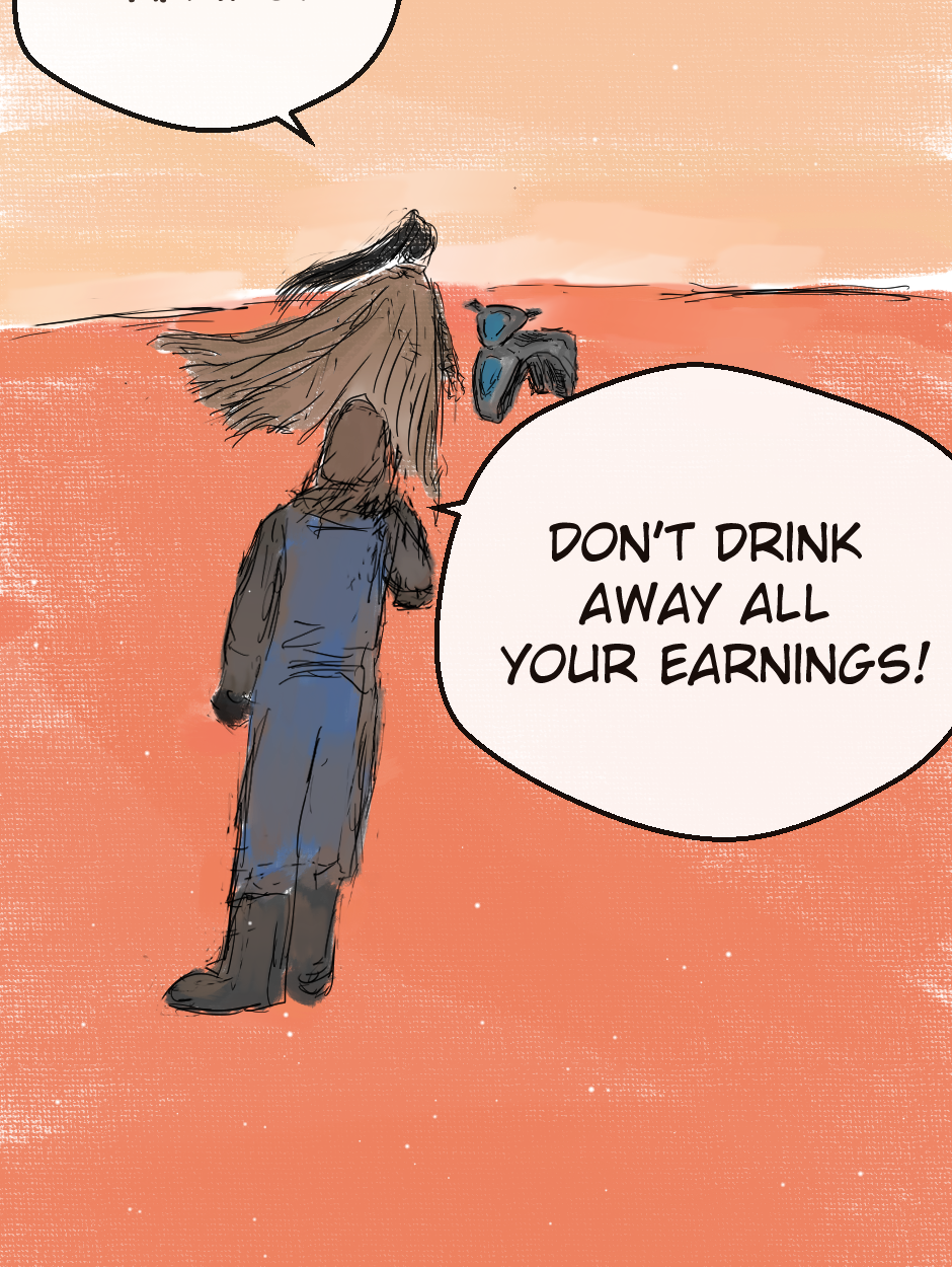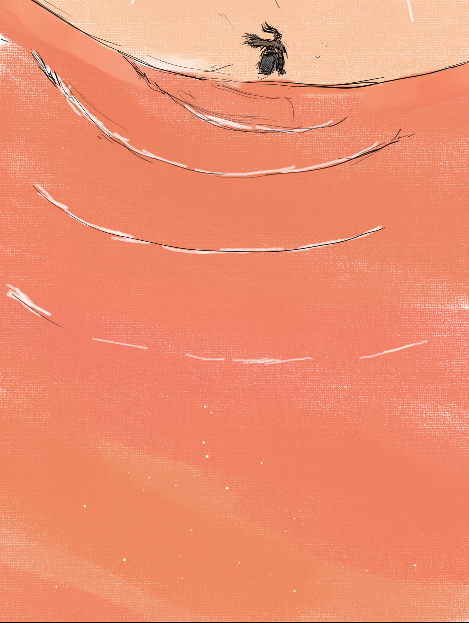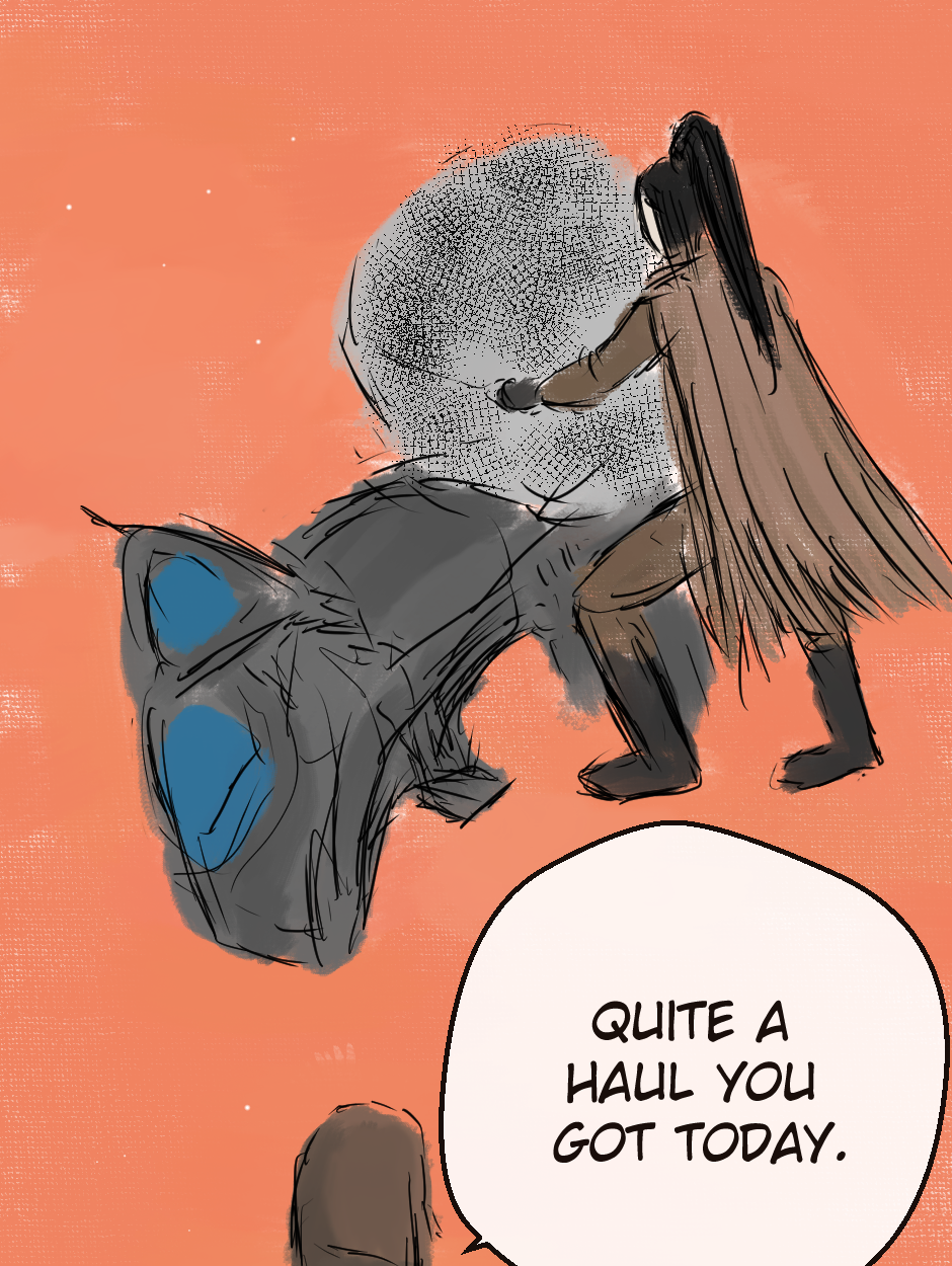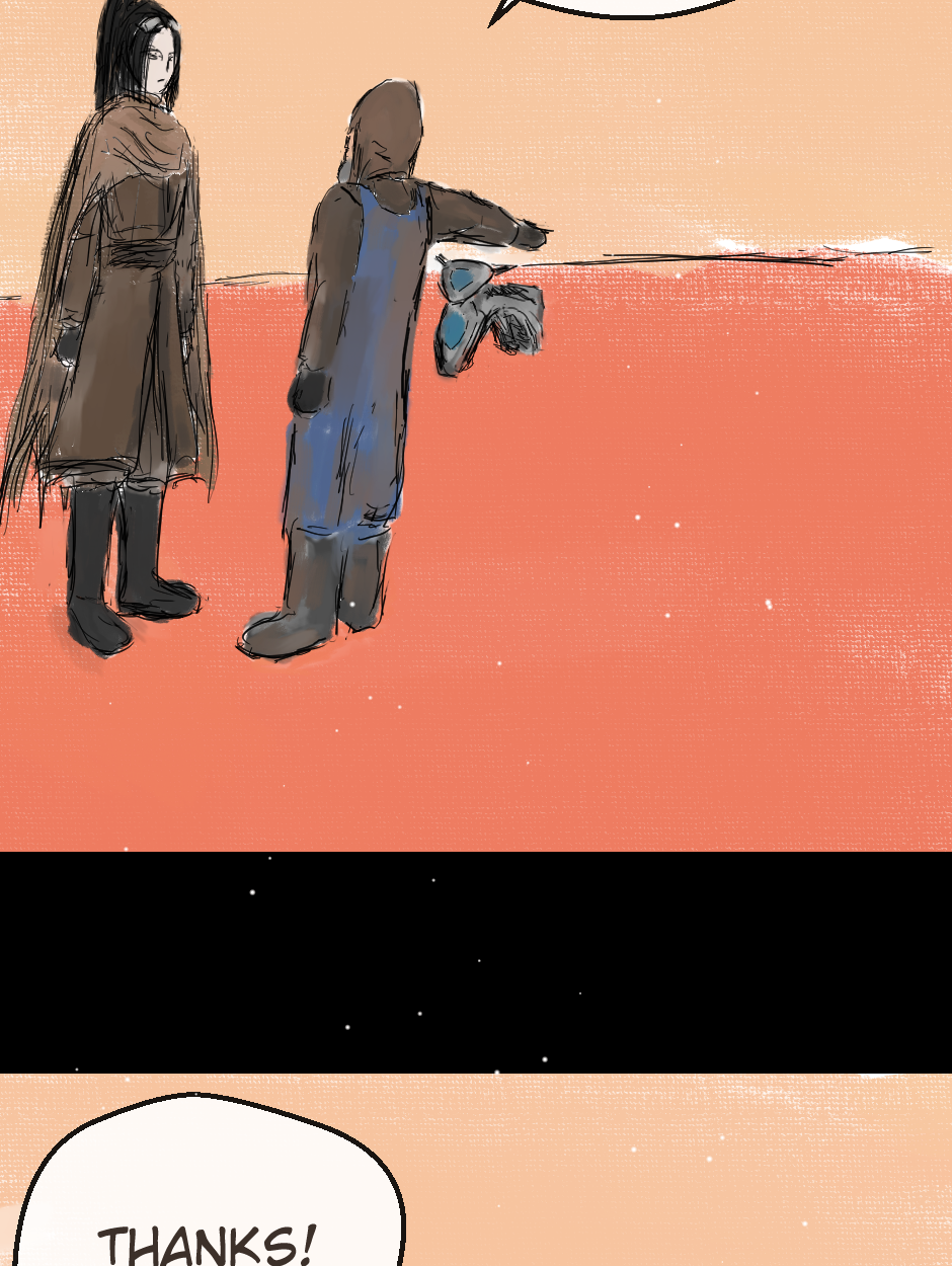Amazing!! Love the drawing and the panel progression!! She reminds me a bit of Rey Skywalker. Would love to learn where she's headed off to. :) More please!