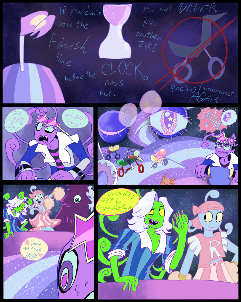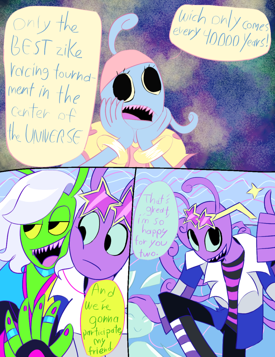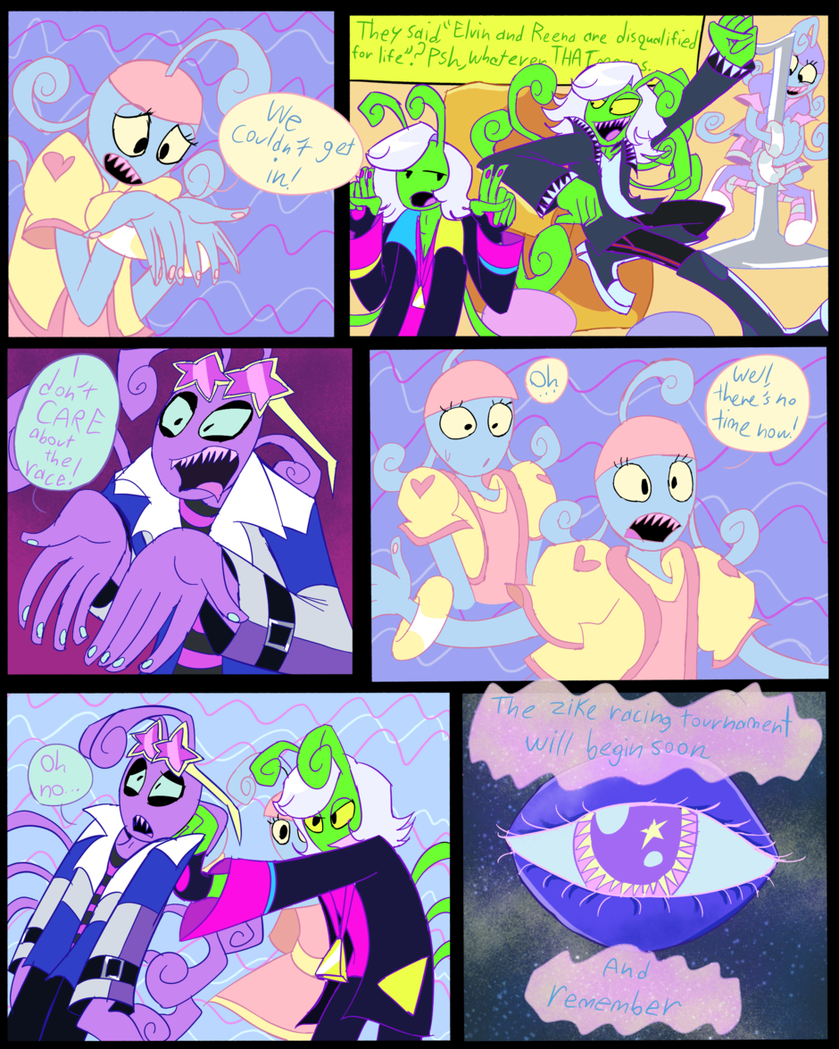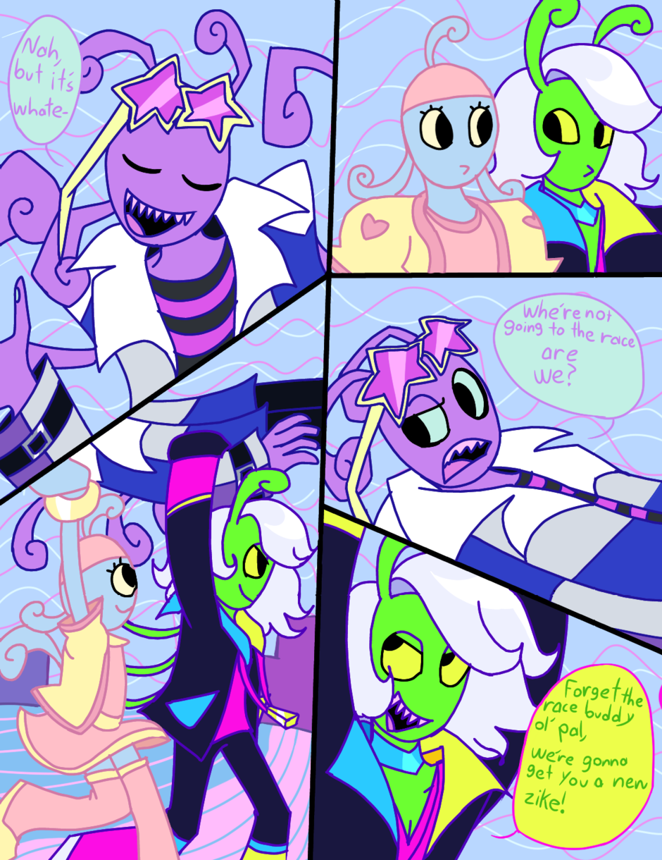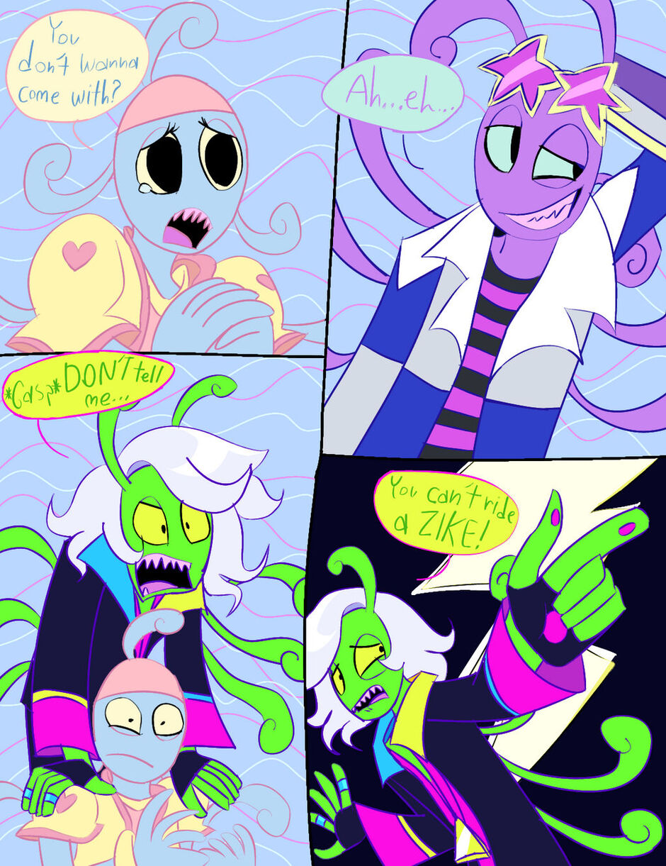 Weegle can't ride a zike, but Reena and elvin can. Now, elvin and Reena decide to teach weegle, but he's gonna have to wear a pod helmet (for newbie zikers) and without consent, elvin entered weegle in a zike racing tournament, and if he doesn't win, he will never ever be able to join any other racing tournament again, not that he cares, like at all.