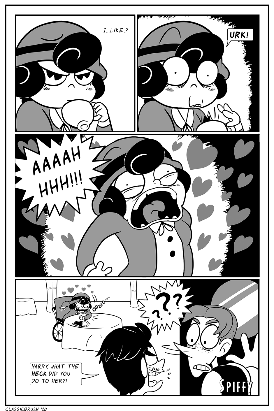 The year is 1928. A young woman in search of excitement stumbles upon a peculiar restaurant owned by some not-so-friendly individuals. A spark strikes between her and a high-spirited yet impish waiter as hijinks mixed with ridiculous cartoon logic soon follow. Surely this duo won’t get into too much mischief… right? RIGHT?!