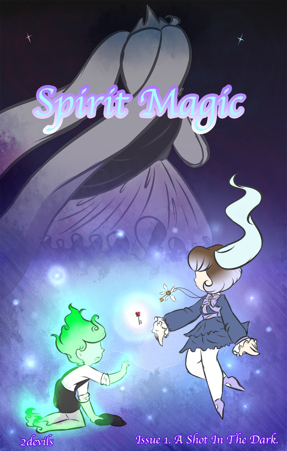Spirit Magic is about a young witch girl named Nausika Astrophel, who possess a rare magic that is able to only affect disembodied souls. Using this magic, she peacefully helps ghosts move on, with the help of her two familiars; Lucius and Trina. Perhaps along the way she may even discover what happened to her missing father.