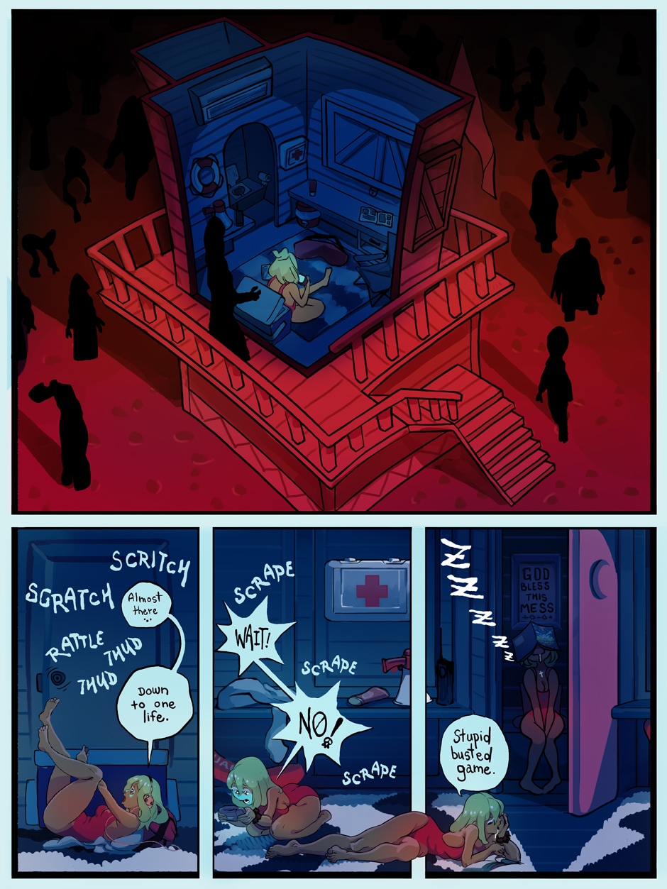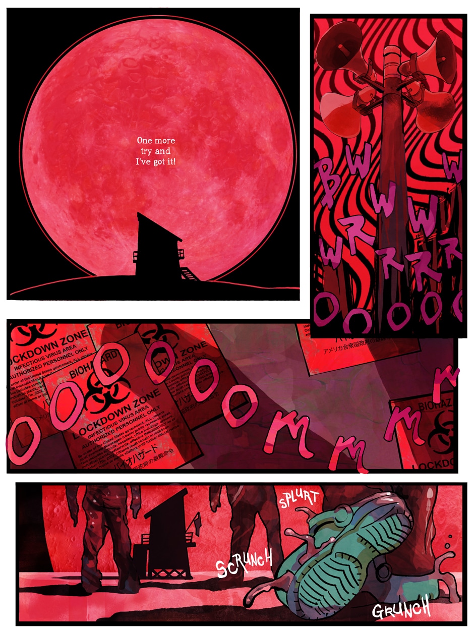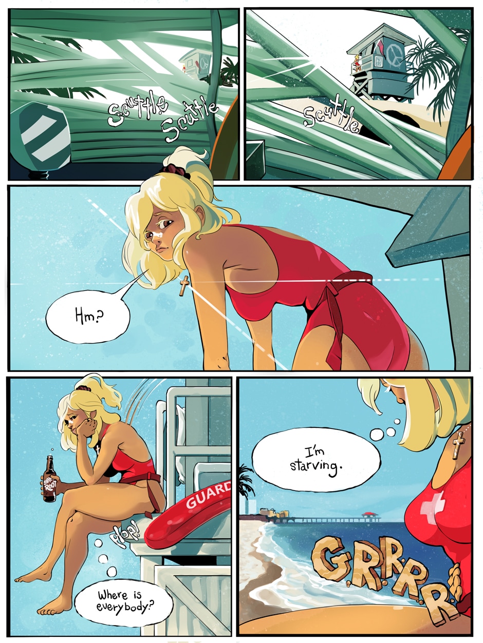 Another day on beach patrol. But something's different. Where are all the beachgoers? Why do I keep hearing noises but not seeing anybody? Does it have anything to do with all that stuff on the news about sick people? Hm...I'm hungry...