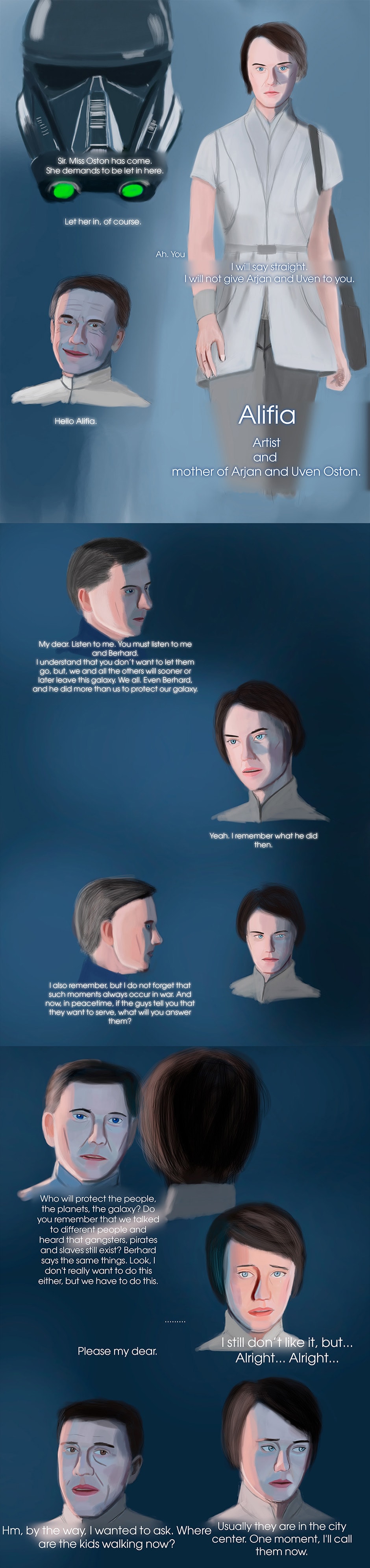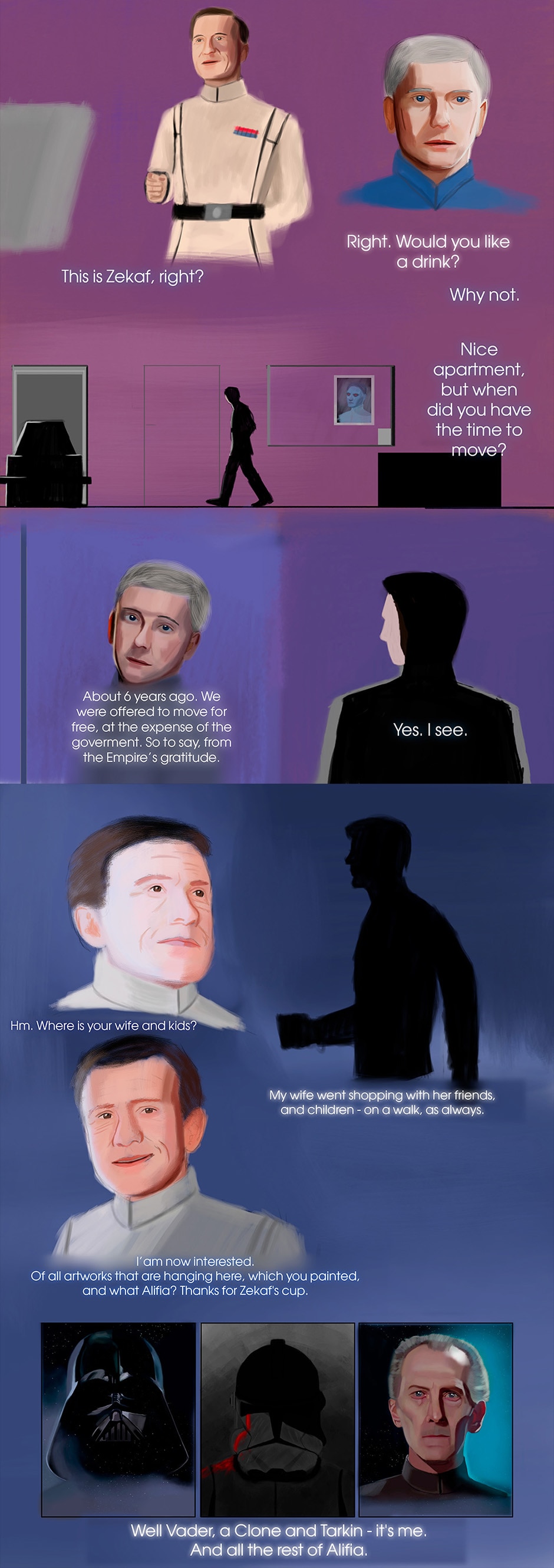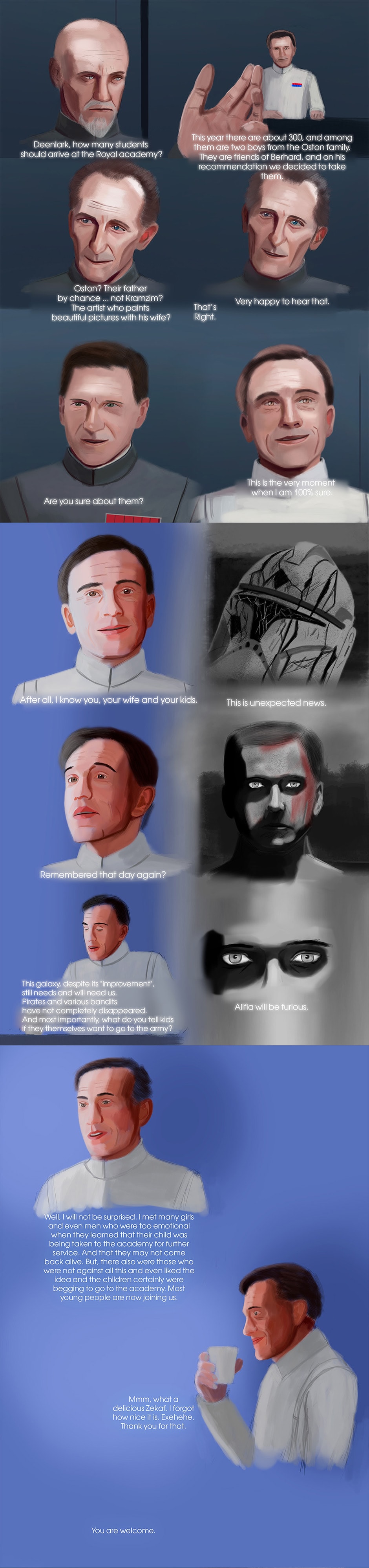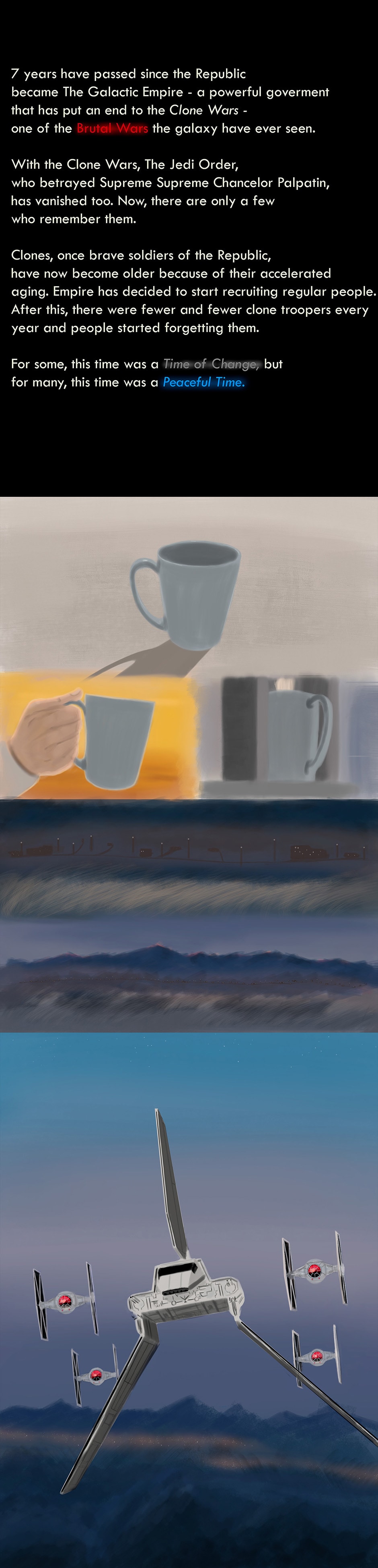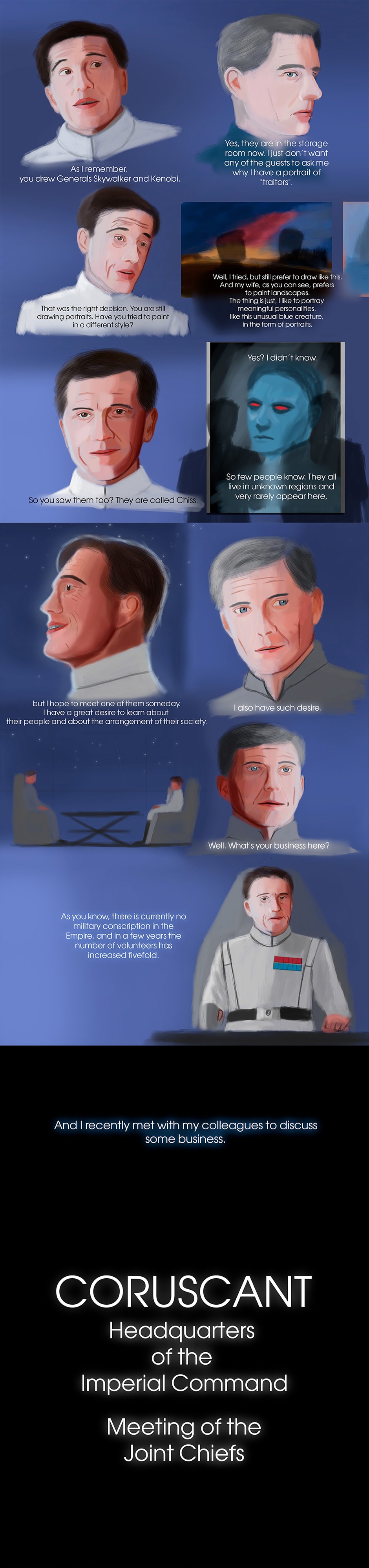 Star Wars: Important Person is a Epic Saga Fan Comic that all events are happening in a different SW universe, but with characters, vehicles, events, planets, rules and other things that I created myself, that was in Expanded Universe and Nowadays Canon. This comic tells an adventure of characters from the Galactic Empire. In Important Person, you will witness heroism, the cruelty of wars, friendship, love, suffering, loss, different perspective, and stories of characters.