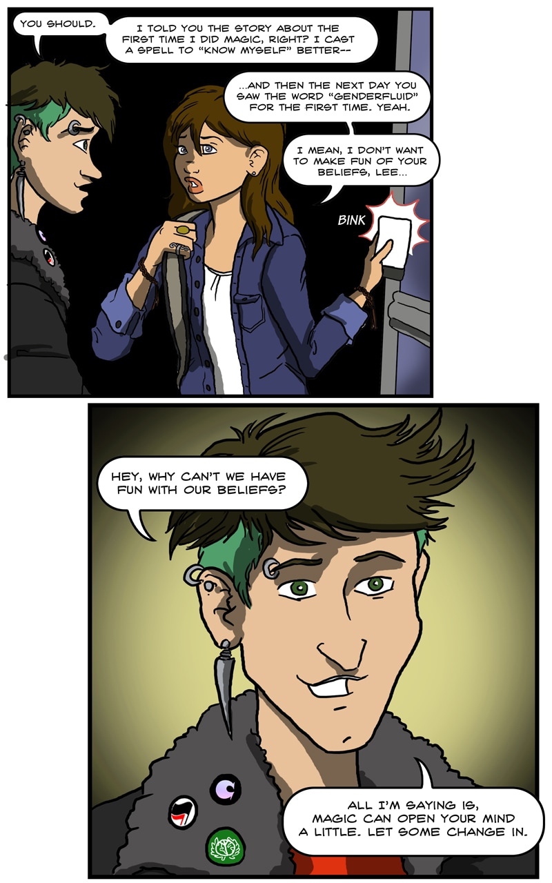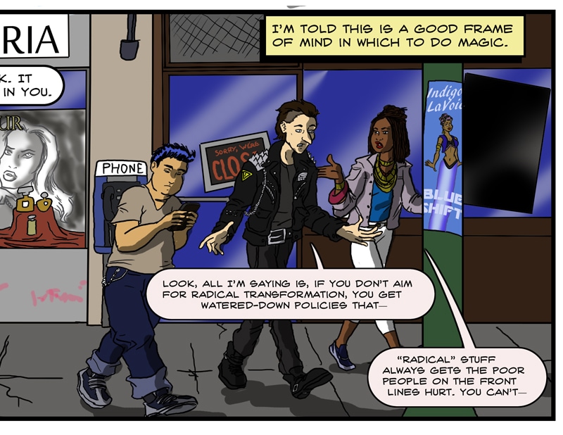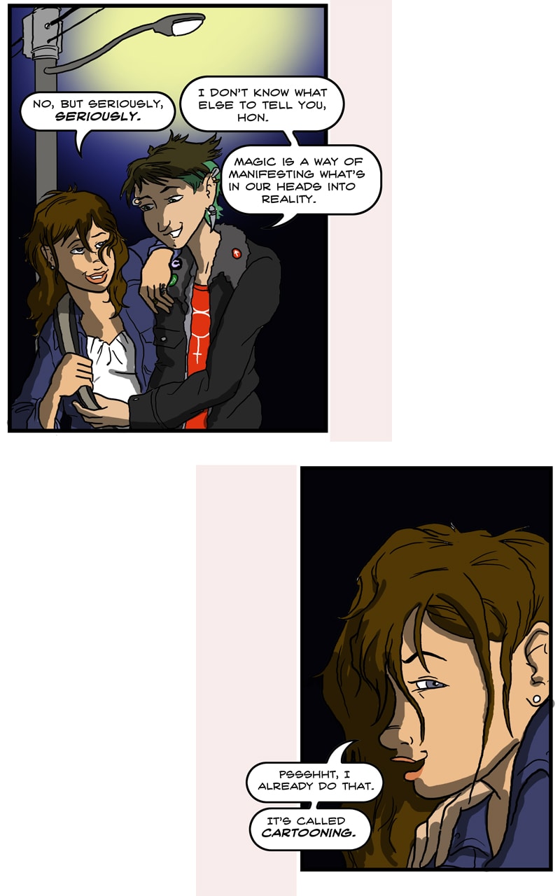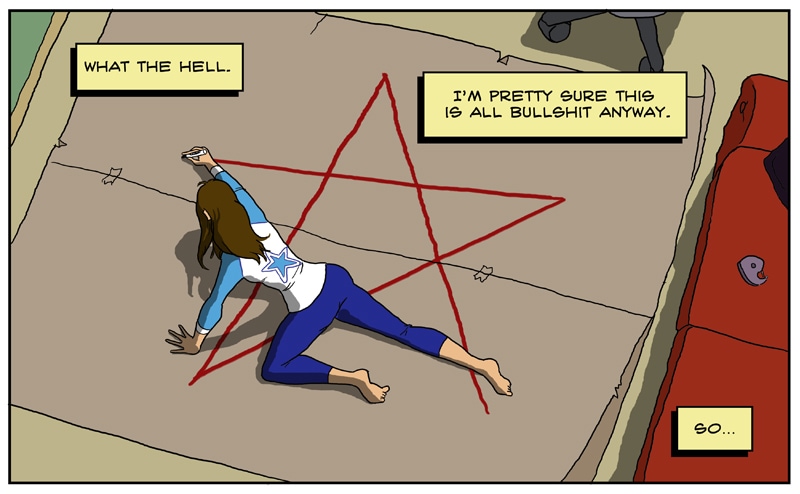 Hey everyone, I'm Adam P., aka Prankster36, and this is Starforce Pentacle! On one level, SP is a zippy space opera about magicians traveling across the universe to save the Earth. On the other, it's a magickal working in comics form, similar to Grant Morrison's The Invisibles or Alan Moore's Promethea. Like Mary Sue, I'm going to see if I can cast a spell to save the world. No pressure or anything...