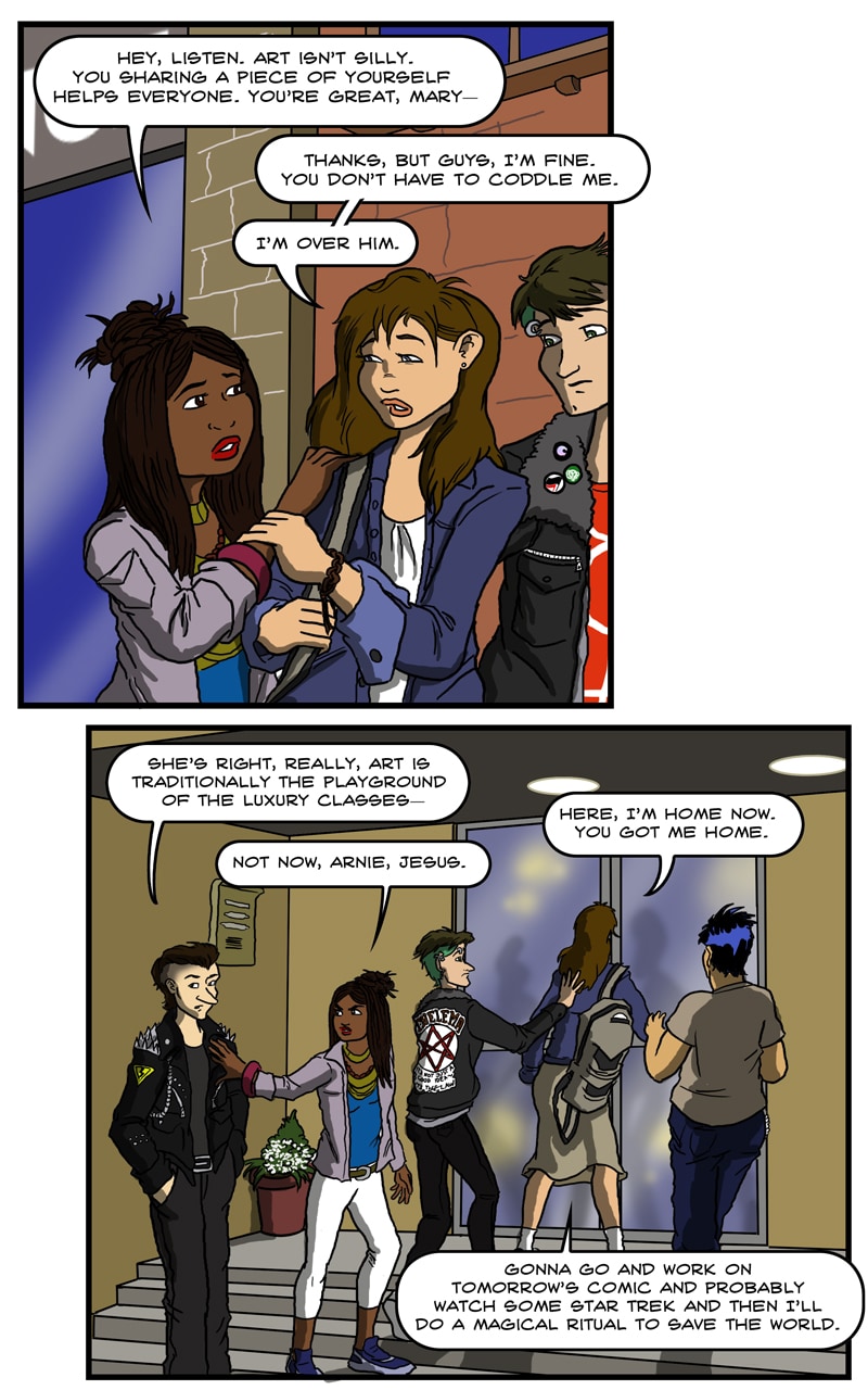 Starforce Pentacle exists in a rough form on Comicsfury--I'll link to that next week. It went up in five page installments every month over the course of two years, but it was never properly finished due to time constraints. Now that it's on Tapas (and Webtoon, by the way) I'm going to use that as an excuse to really get it polished and into shape as I go. A new chapter will be up every Thursday until I've posted all 25 original chapters. At that point I'll be taking a break but I'll be back before next year is out with some new content!