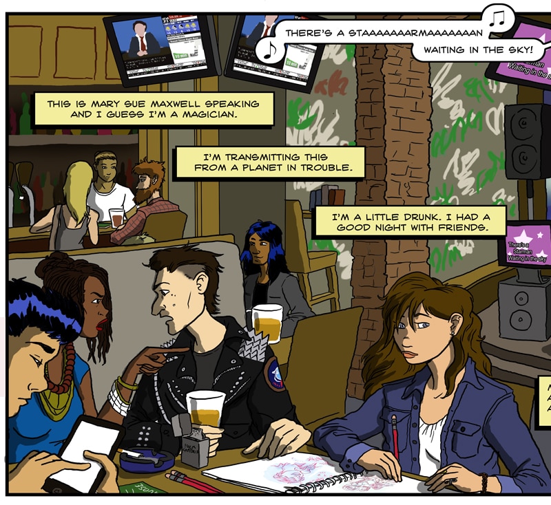 Mary Sue Maxwell was just a small-time cartoonist who dreamed of making the world a better place. She didn't think, when she decided to dabble in magic, that the first spell she cast would throw the secret powers of Earth into chaos. Now she's been thrown across the galaxy with a team of anarchist sorcerors on a mission to save the world. STARFORCE PENTACLE is a way out magickal trip of a space opera webcomic, like The Invisibles for people who watch too much Star Trek. Five by five!