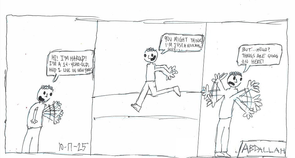 Harold's life isn't going off to a great start. He has things going on. What might they be? Lets read more tomorrow to find out!