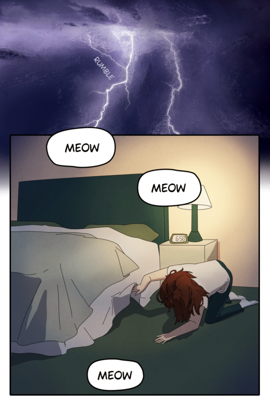 I drew this inspired by how my cat, Kelo, reacts to storms and thunder.