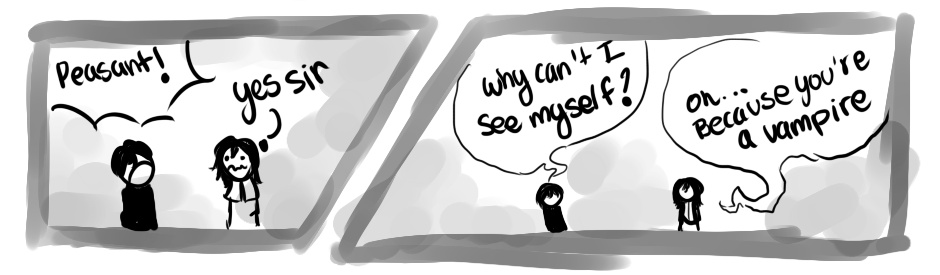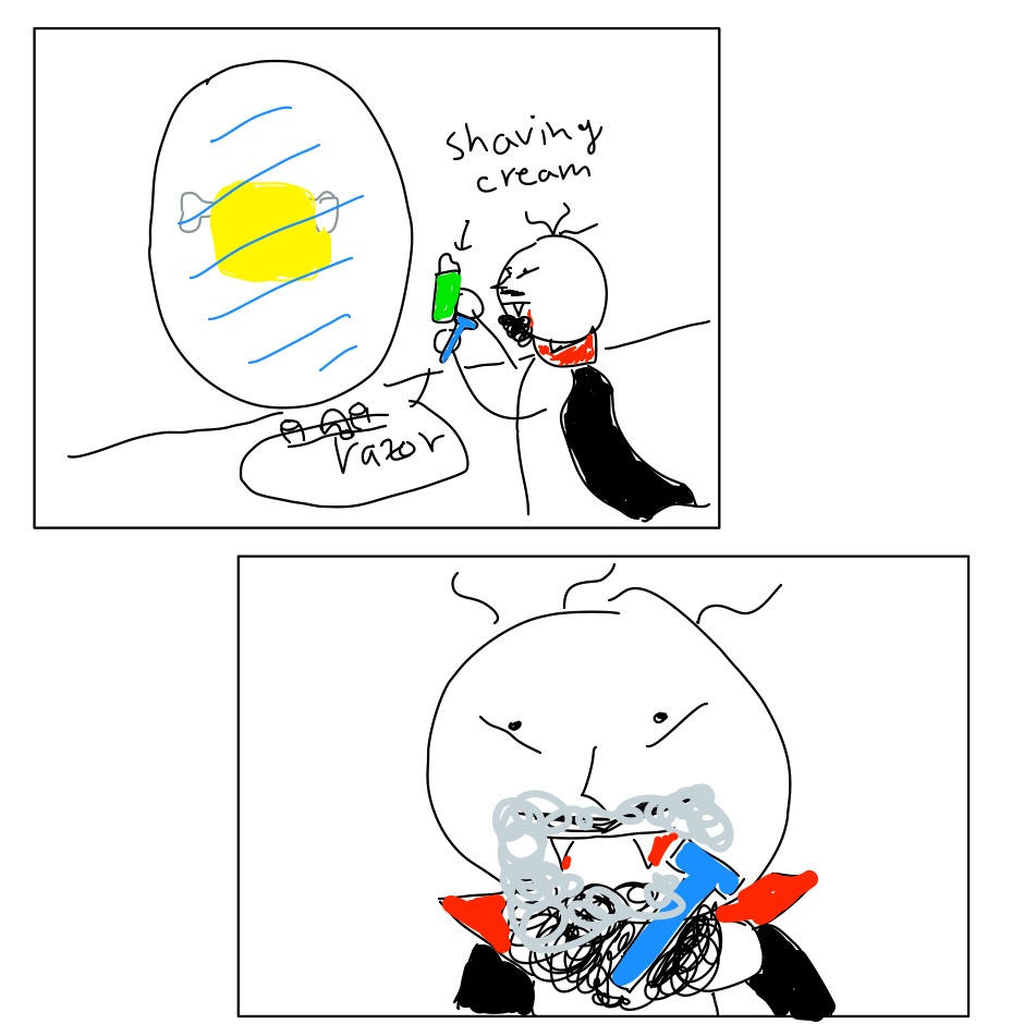 Prompt: A vampire is shaving but the mirror doesn't work for them.