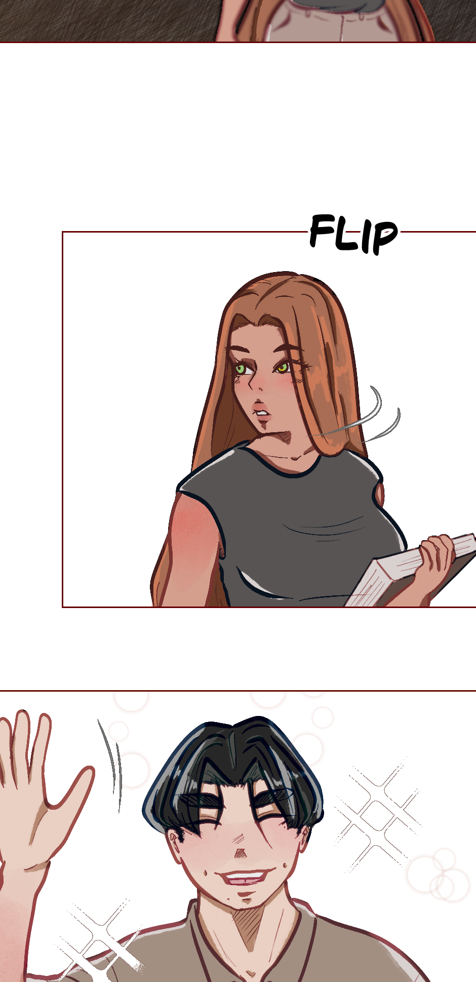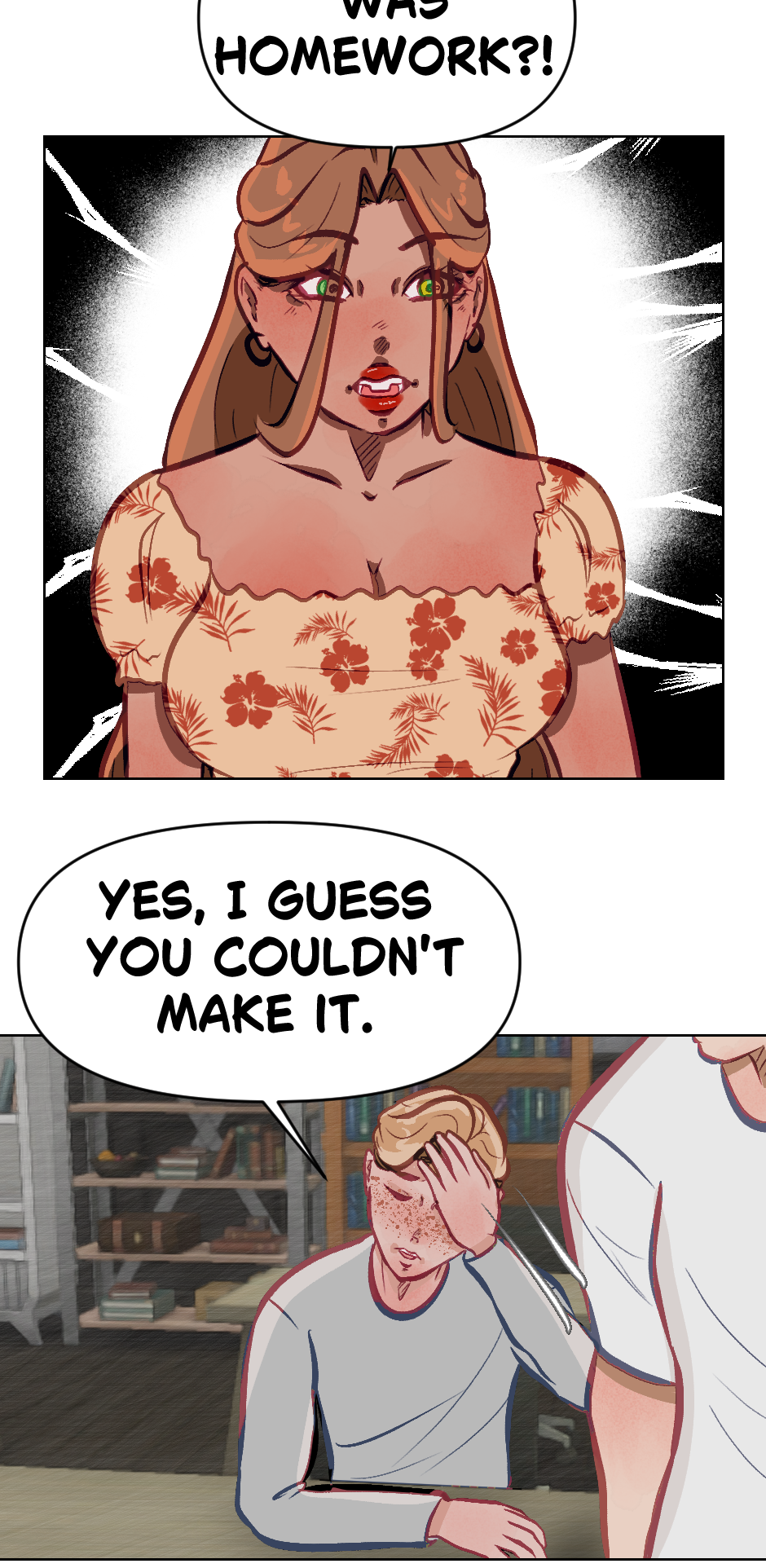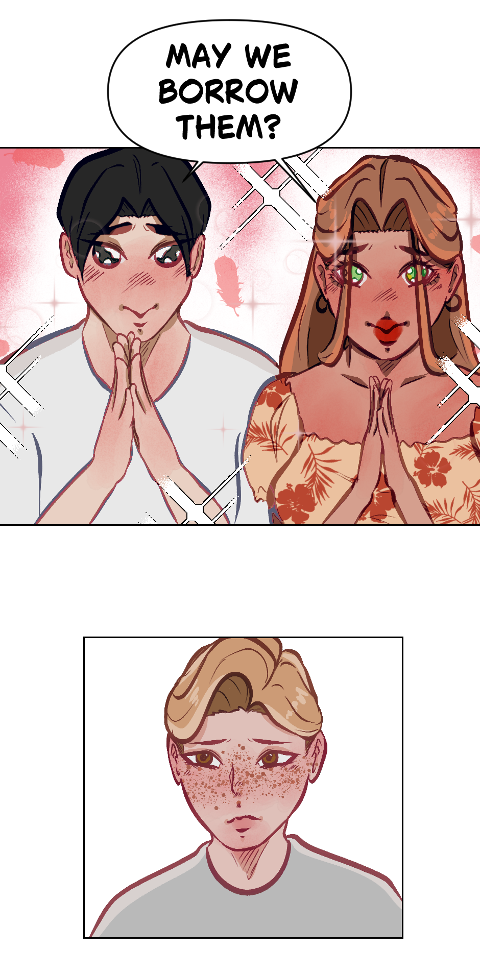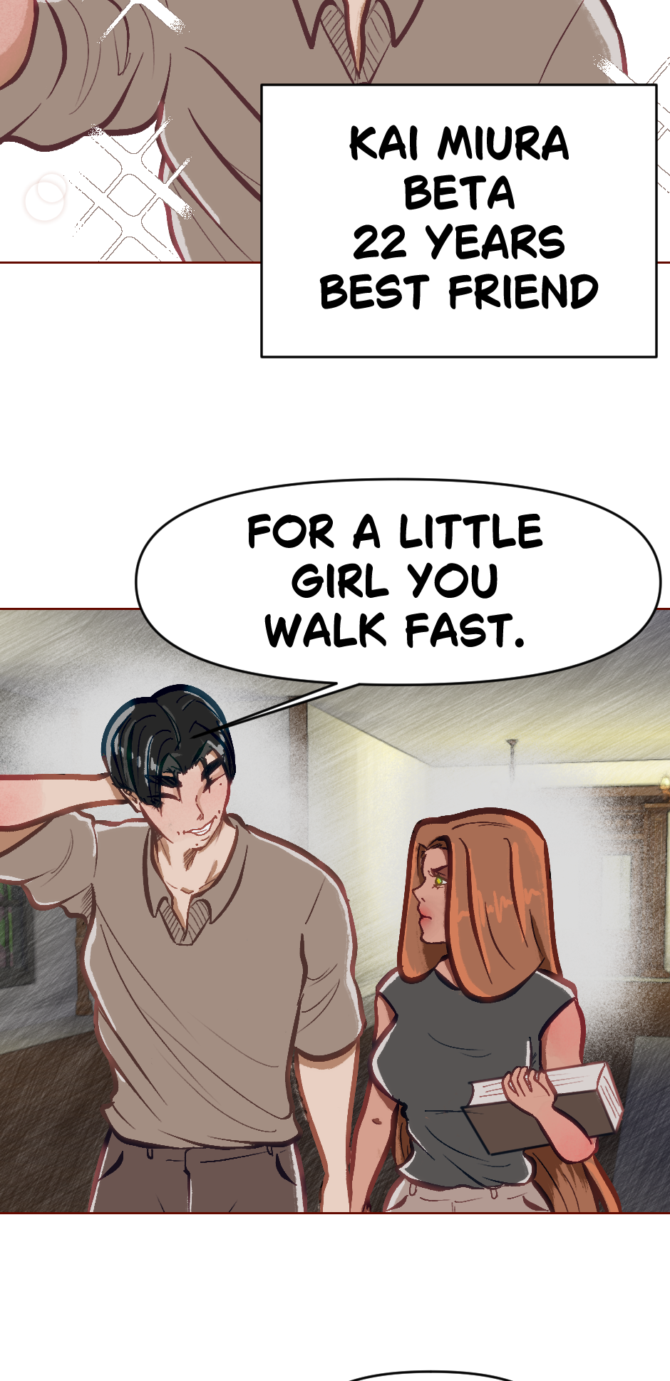 Cute! Though its kinda hard to read but i dont blame you! Its cool if english isnt your first language its still understandable and seems really promising! Hope this doesnt offend you author in any way