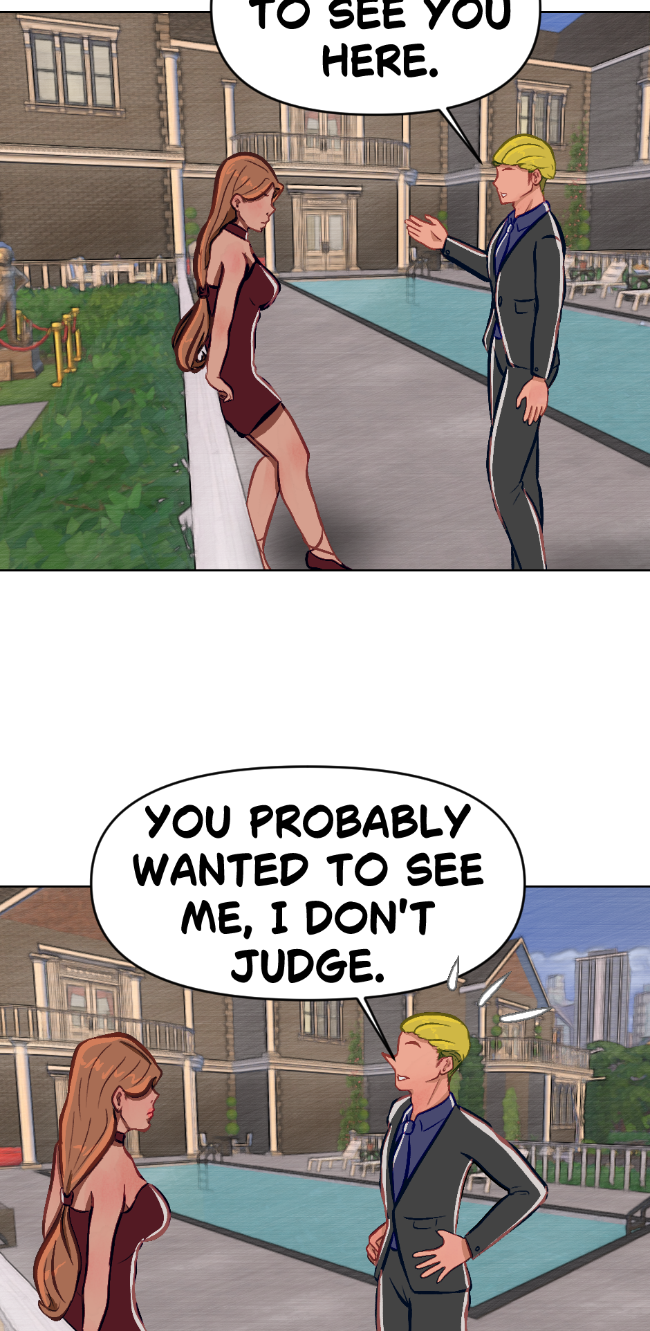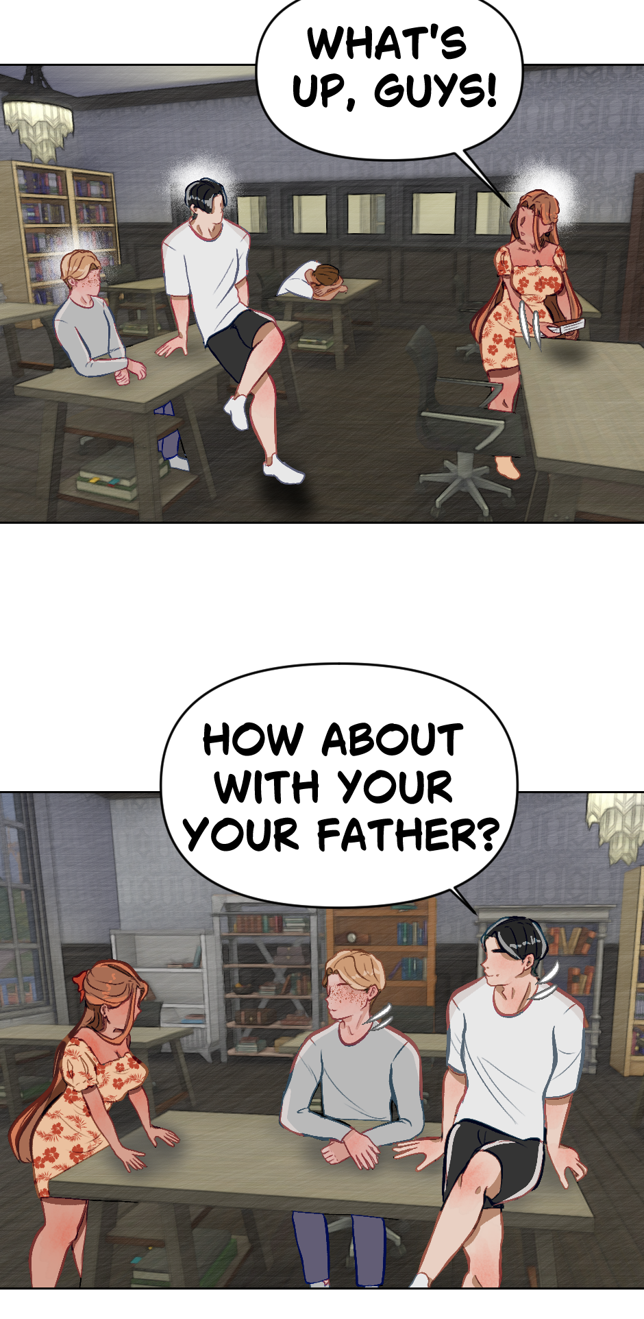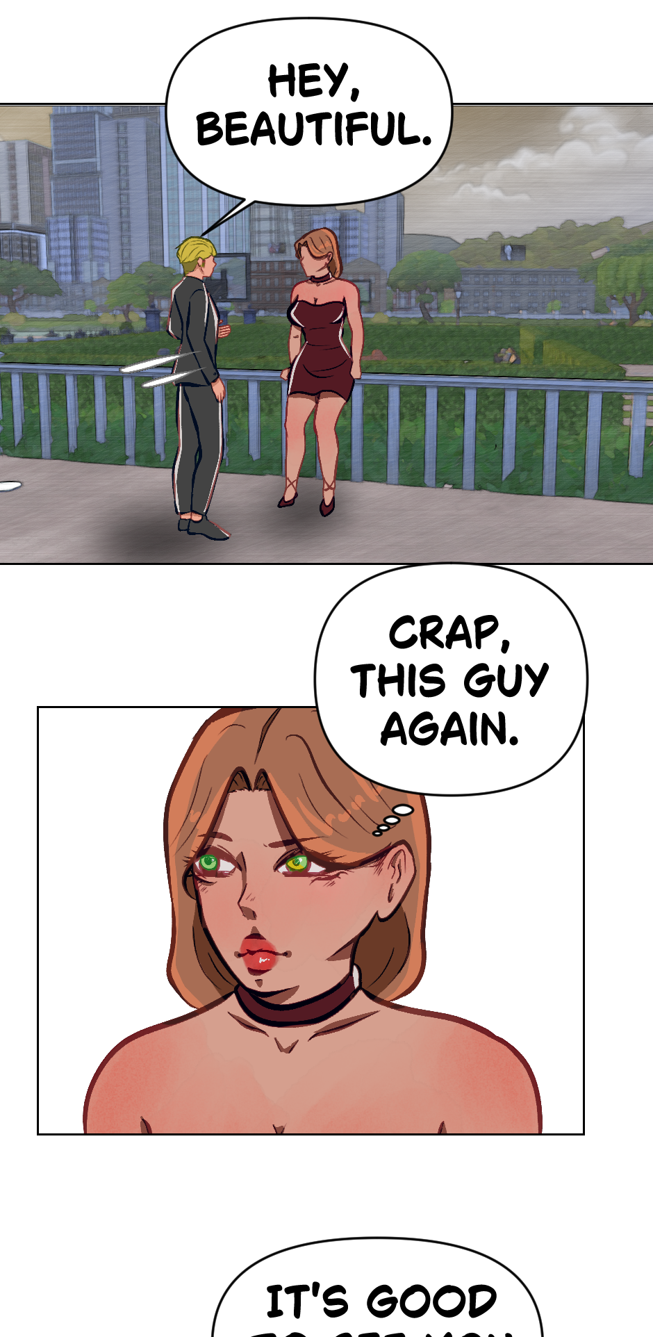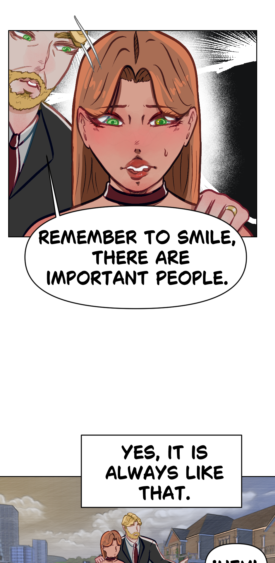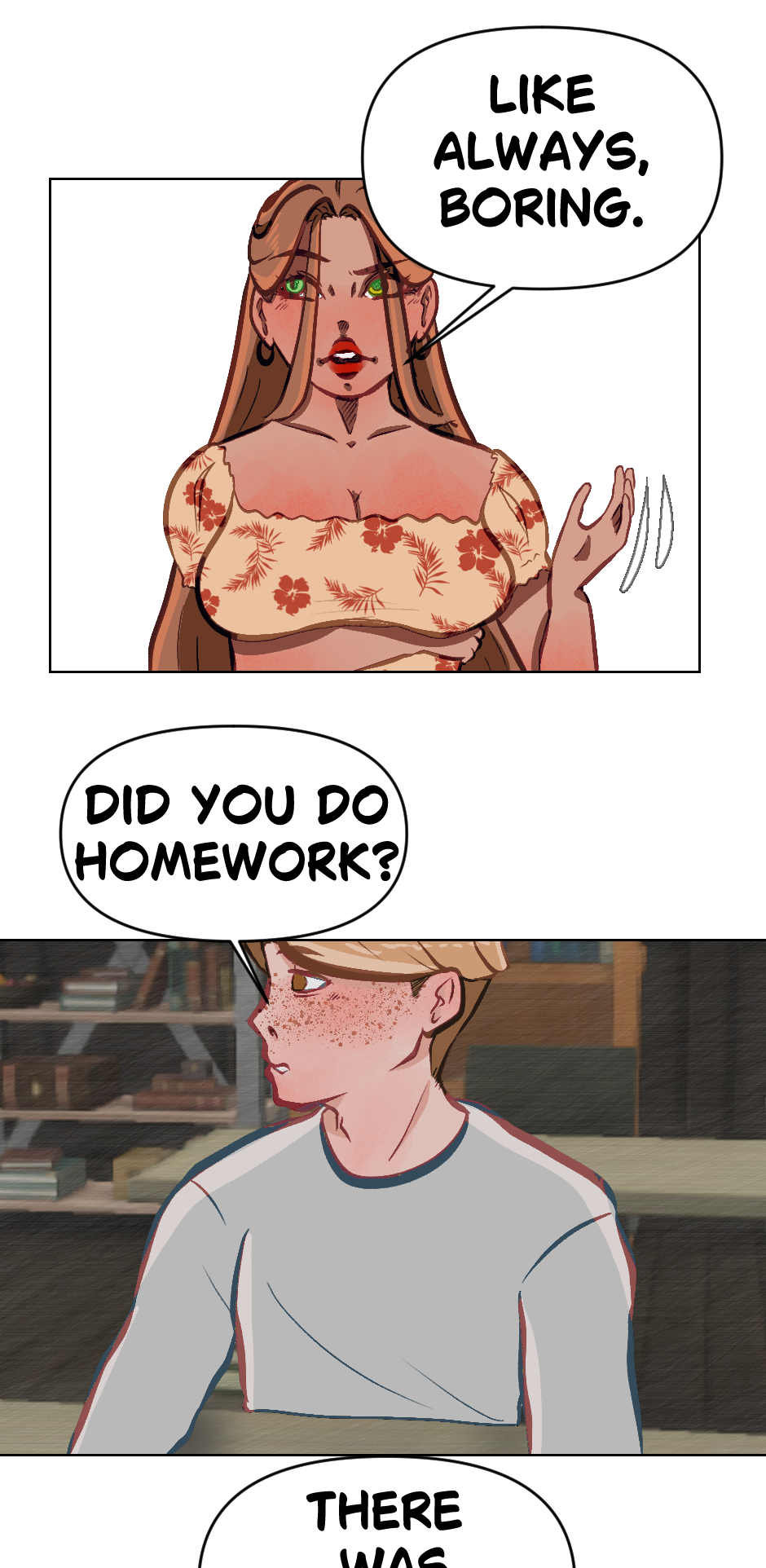Cute! Though its kinda hard to read but i dont blame you! Its cool if english isnt your first language its still understandable and seems really promising! Hope this doesnt offend you author in any way