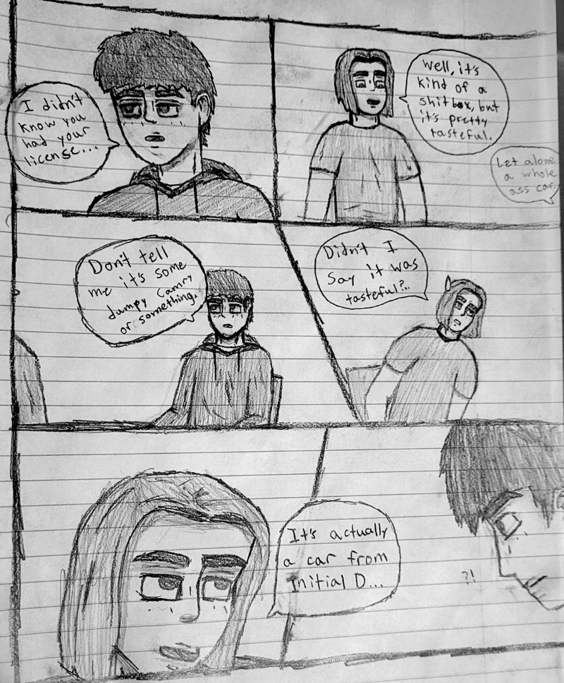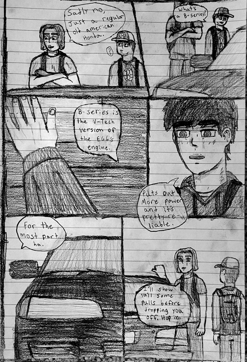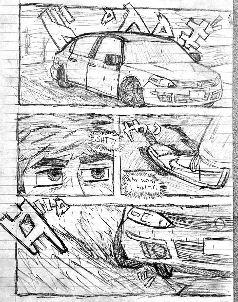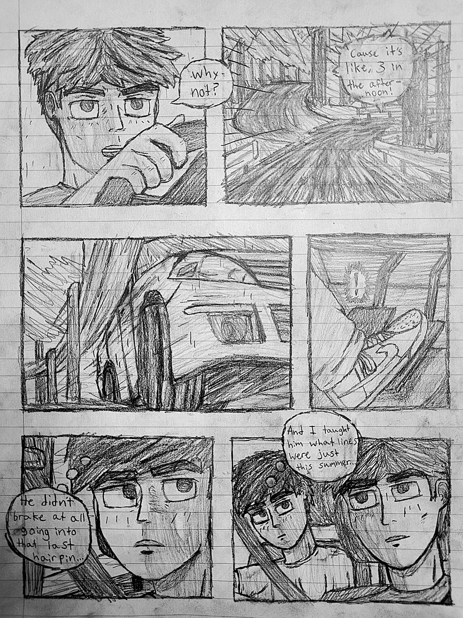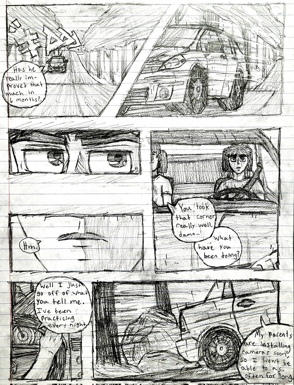 High schooler Aedan Taylor has always been into cars. Going to car meets, watching events, even sim racing. But he has never had the resources to experience the true rush of the street... Until one night, he's able to express what he has built up for years. This school year has slingshot Aedan into the nocturnal racing scene, and he's excited to see where this path will take him. Experience the true nature of street racing, speed, anxiety, and hard love in this hand-drawn comic, Streak.